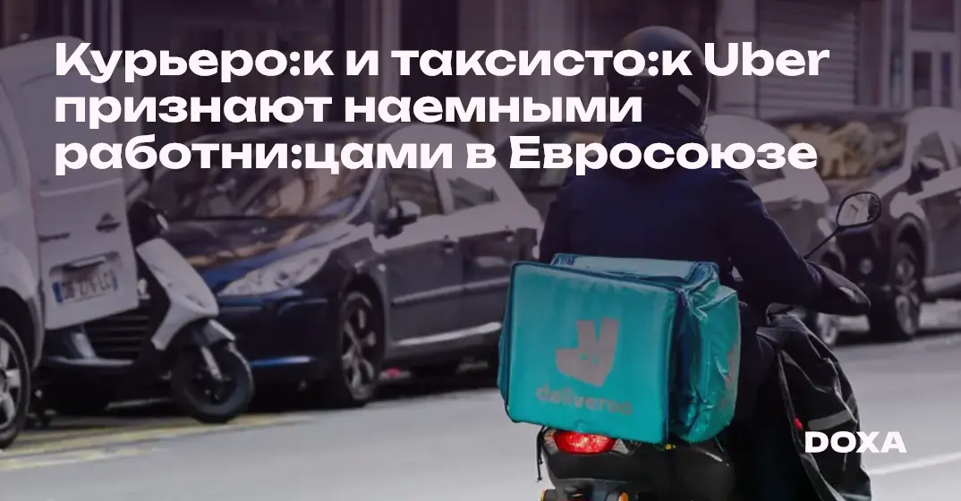 Совет Евросоюза вводит новые правила для Uber, Deliveroo и других подобных компаний, чтобы лучше защитить права работни:ц. Теперь курьер:ки и таксист:ки могут быть признаны наемными работни:цами компаний с платформенным типом занятости.