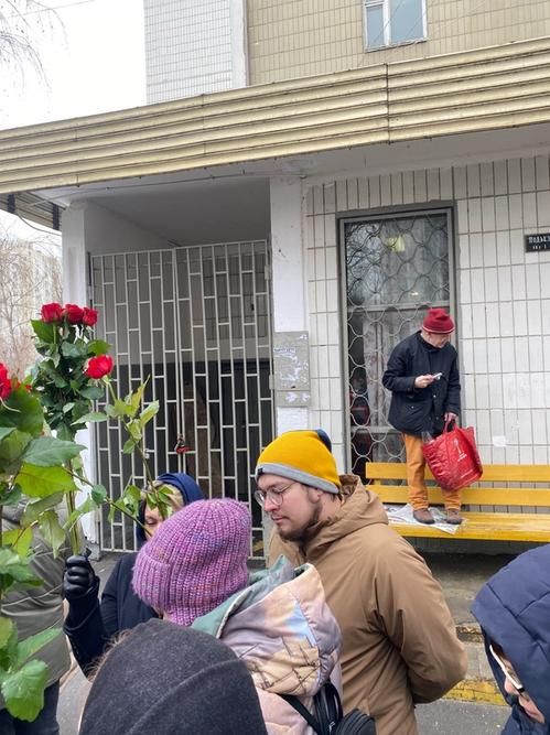 К церкви идет 19-летняя Маша, которая ушла с пар, чтобы попрощаться с политиком. Ее нижнее веки красные то ли от макияжа, то ли от слез. «Я очень тревожный человек. Много раз хотела уйти с похорон, но глядя на всех этих смелых людей вокруг — поняла, что не смогу этого сделать», — говорит девушка. Изначально на отпевание она собиралась одна: заранее удалила телеграм и купила в переходе у университета четыре гвоздики. Но сейчас она шагает под руку вместе с Викой. Девушки познакомились в очереди.