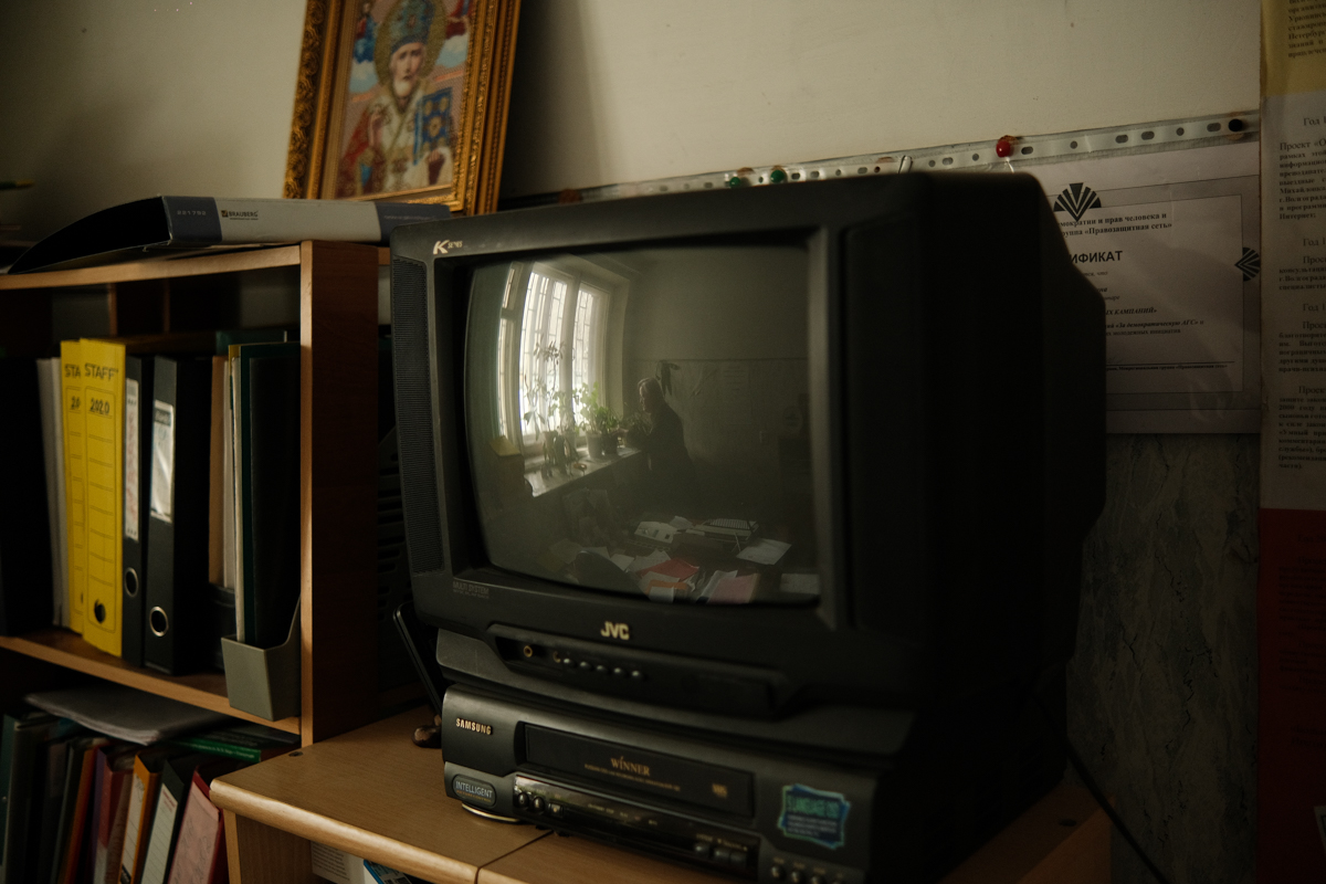 В офисе организации «Материнское право»Фото: Виген Аветисян для ТД «Приходили и спрашивали: “Что бы сделать, чтобы сын не попал в армию? Обращения никакие писать никуда не хотим, нам бы по-тихому — помогите “откосить”. Мы говорим: “Вы спускались с лестницы [в подвал], видели название организации? Правозащитная. Помогаем, если только нарушены ваши права. “Косить” не помогаем”».