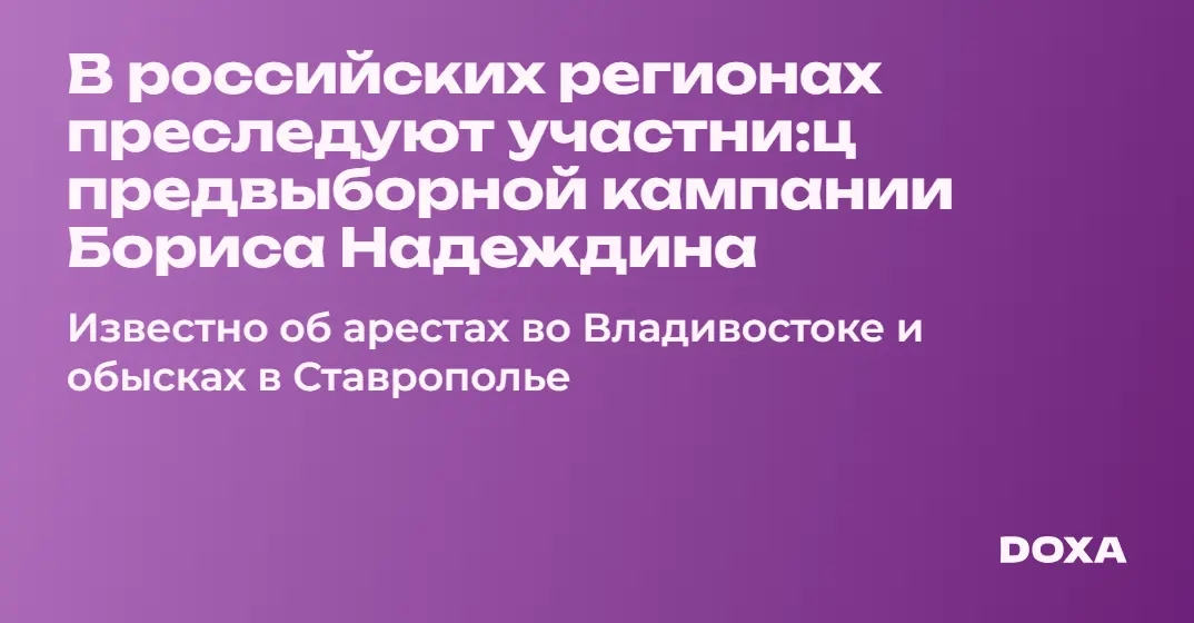 Ранее во Владивостоке арестовали трех соратни:ц Надеждина и студенто:к ДВФУ — главу городского штаба Игоря Краснова, волонтеро:к Даниила Лаптева и Анастасию Конькову. Владислав Спиренков, которого арестовали позже, учится во владивостокском филиале Российской таможенной академии.