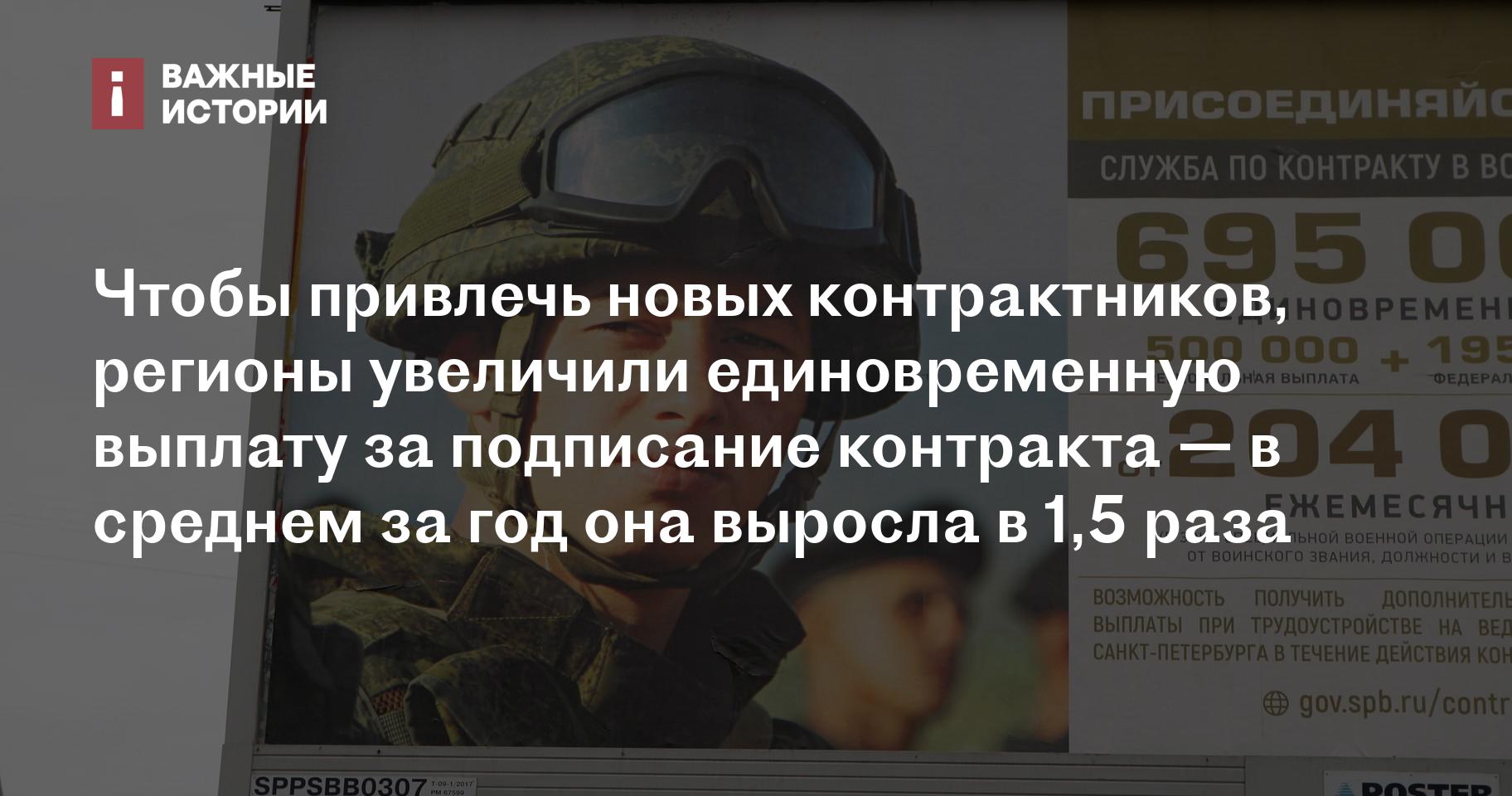 Чтобы привлечь новых контрактников, регионы увеличили единовременную выплату за подписание контракта — в среднем за год она выросла в 1,5 раза