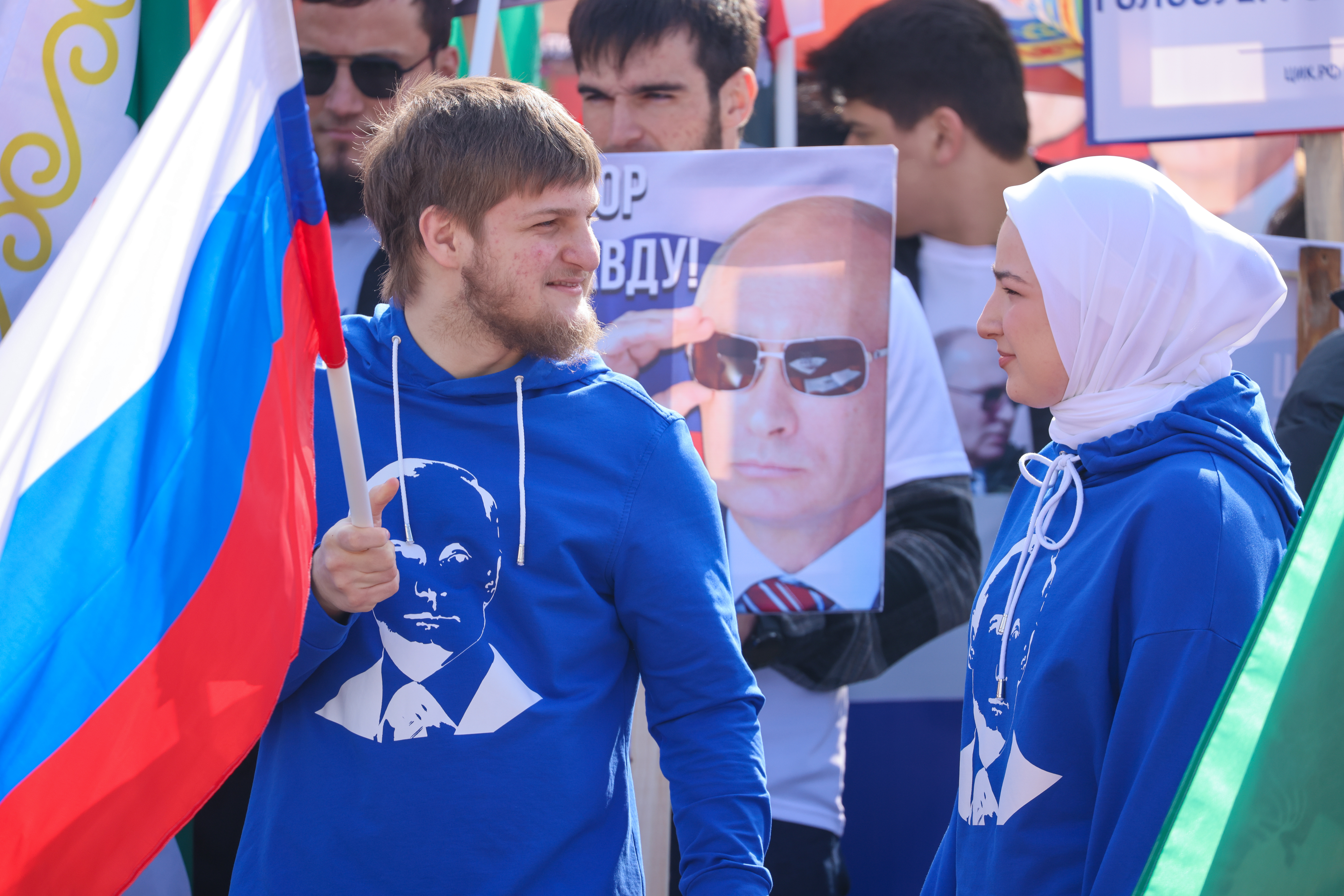 На ЧГТРК "Грозный" в начале марта вышло более 30 новостей с упоминанием действующего президента, в то время как оставшиеся трое кандидатов упоминались только однажды в общей новости, посвященной региональному штабу поддержки Путина. Более того, 10 марта в центре Грозного прошел пропутинский митинг: по заявлению главы Чечни Рамзана Кадырова, в нем участвовали около 150 тысяч человек, проверить достоверность этой оценки невозможно. Оппозиционный чеченский телеграм-канал 1ADAT со ссылкой на жителей писал об отправке на акцию студентов и бюджетников под угрозой увольнения. Кадыров и другие выступавшие не скрывали, что акция проводится в поддержку Путина.