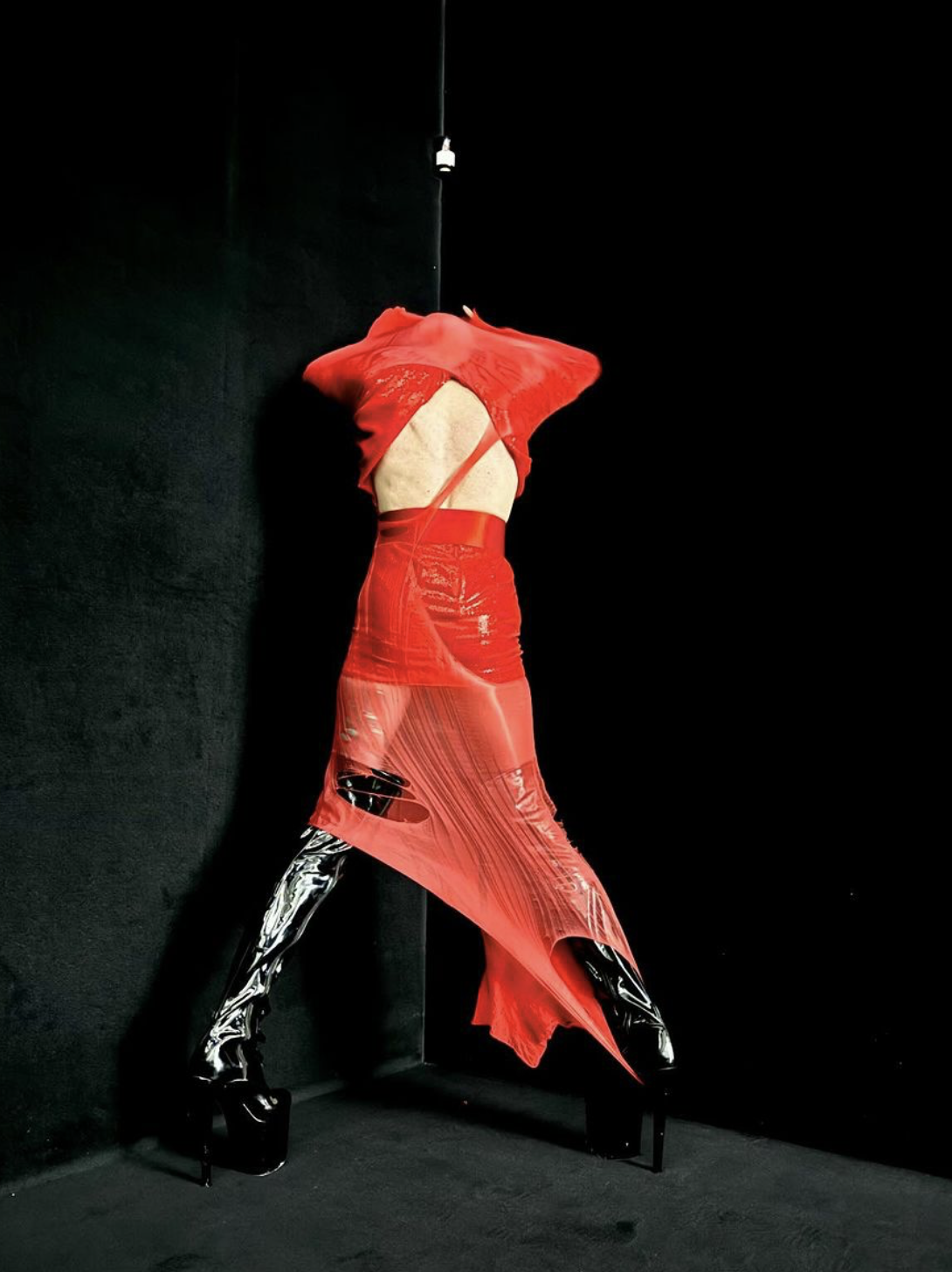 Джина их не разочаровала. Она взошла на сцену в длинном красном платье и черных ботфортах на десятидюймовых шпильках. Выбеленное лицо с прорисованными глазами символизировало стирание личной истории, навязанного гендера и национального менталитета, принесенных в жертву свободному искусству.