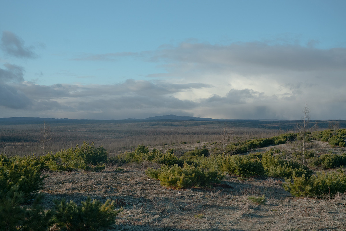 Стланик считается сорняком, им активно зарастают горельники – так называют лесные территории северного Сахалина, по которым прошлись сильнейшие пожары в 1998 году. "Тут он молодой, по колено, а бывает два-три метра в высоту. Забивает собой все, в том числе ценные моховые места", – рассказывает Герман про стланик. Деревья здесь редкие, низкие и "худые" – земля все еще не восстановилась от пожаров двадцатилетней давности. Хотя раньше была классическая, плотная тайга.