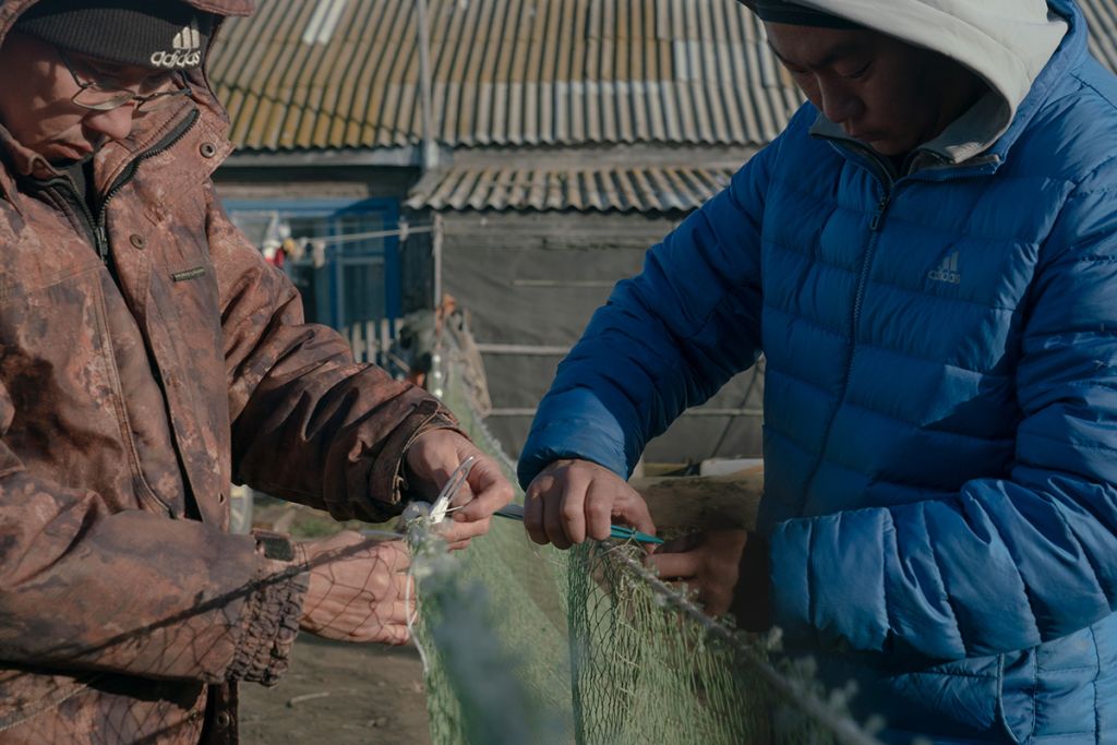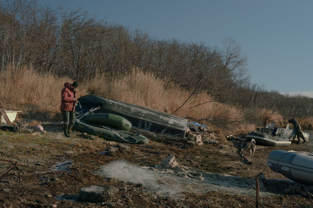 Село Некрасовка стоит на побережье залива Помрь. У воды рассыпаны шуршащие кучки морской капусты с характерным запахом. Они волнообразно стелются вдоль всего берега. Сегодня отлив. Вода убежала, оголив песчаные "банки" – так здесь называют отмели. Границы острова Сахалин изрезаны заливами, каждый живет собственной жизнью и обязывает людей учитывать свои циклы. Рыбак Руслан Няван показывает приложение на телефоне, помогающее отслеживать эти циклы: "Видите, а завтра будет двойная вода". Все, кто взаимодействует с морем, знают об особенностях поведения того или иного залива. У коренных народов от "настроения" воды буквально зависит распорядок дня.