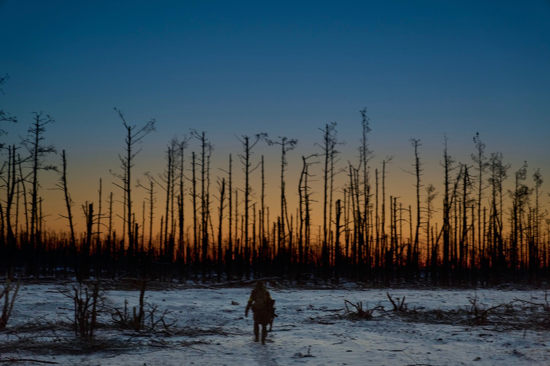 Kostiantyn Liberov / Libkos / Getty Images Боец «Эдельвейса» на рассвете выдвигается на штурм позиций ВС РФ в лесу под Синьковкой на Купянском направлении