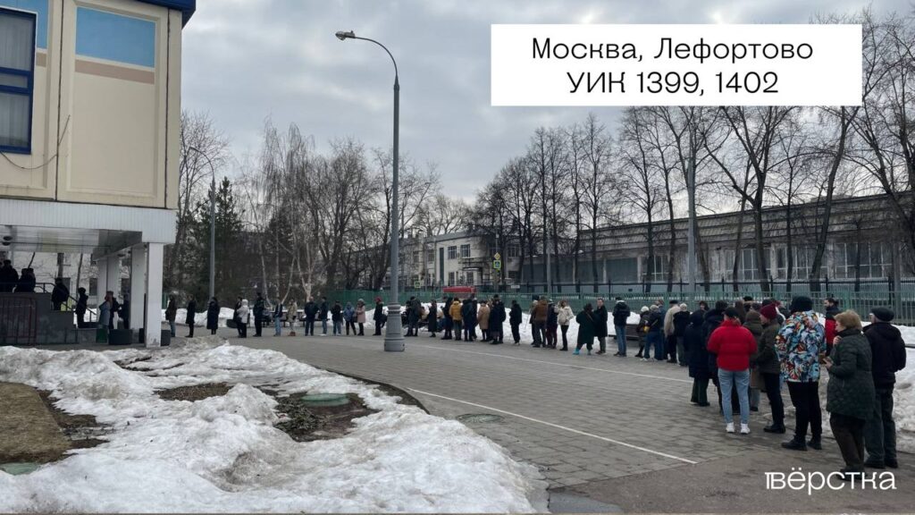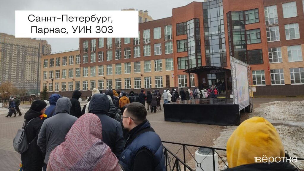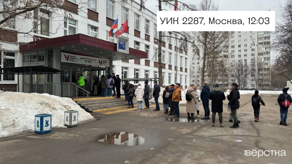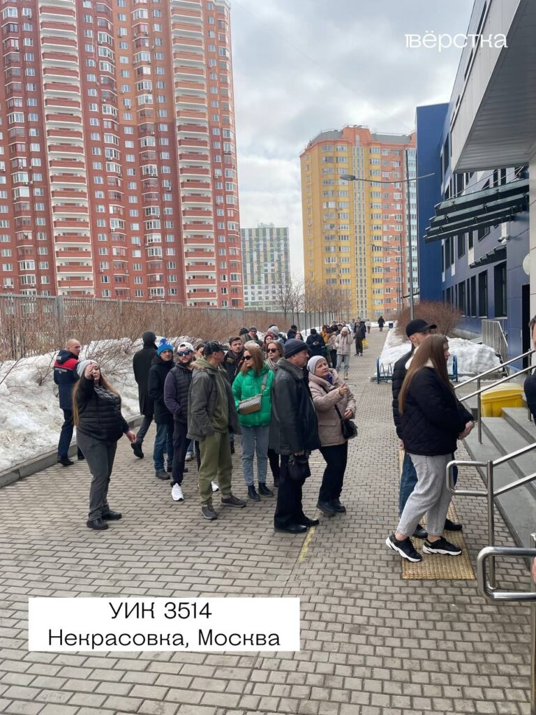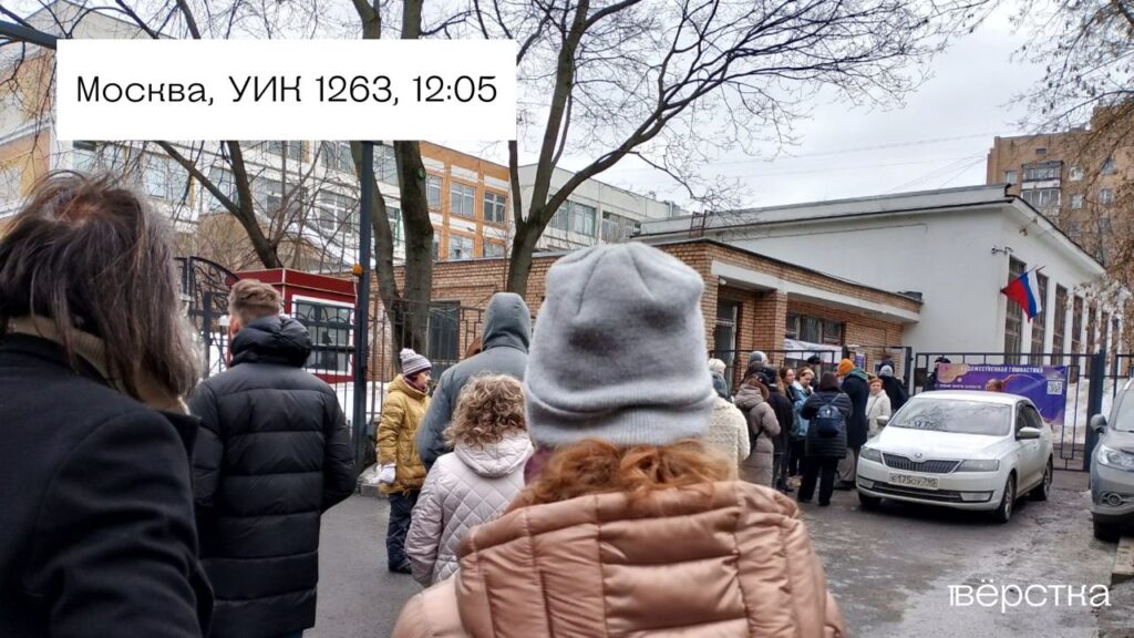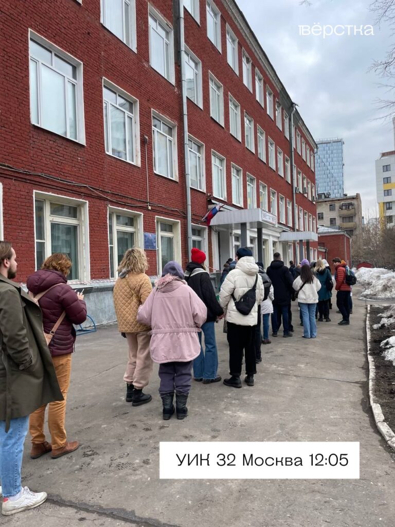 Редакция «Вёрстки» 17 марта 2024 |Подписчики отмечают, что очереди начали формироваться на участках именно после 12:00