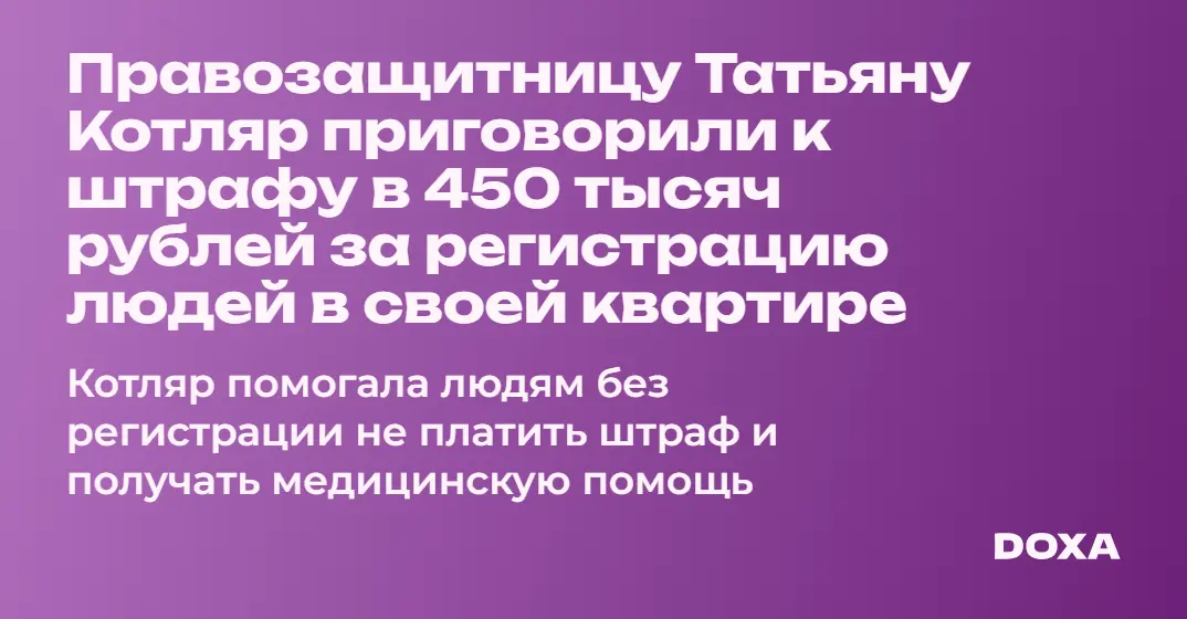 Правозащитницу Татьяну Котляр приговорили к штрафу в 450 тысяч рублей за регистрацию людей в своей квартире