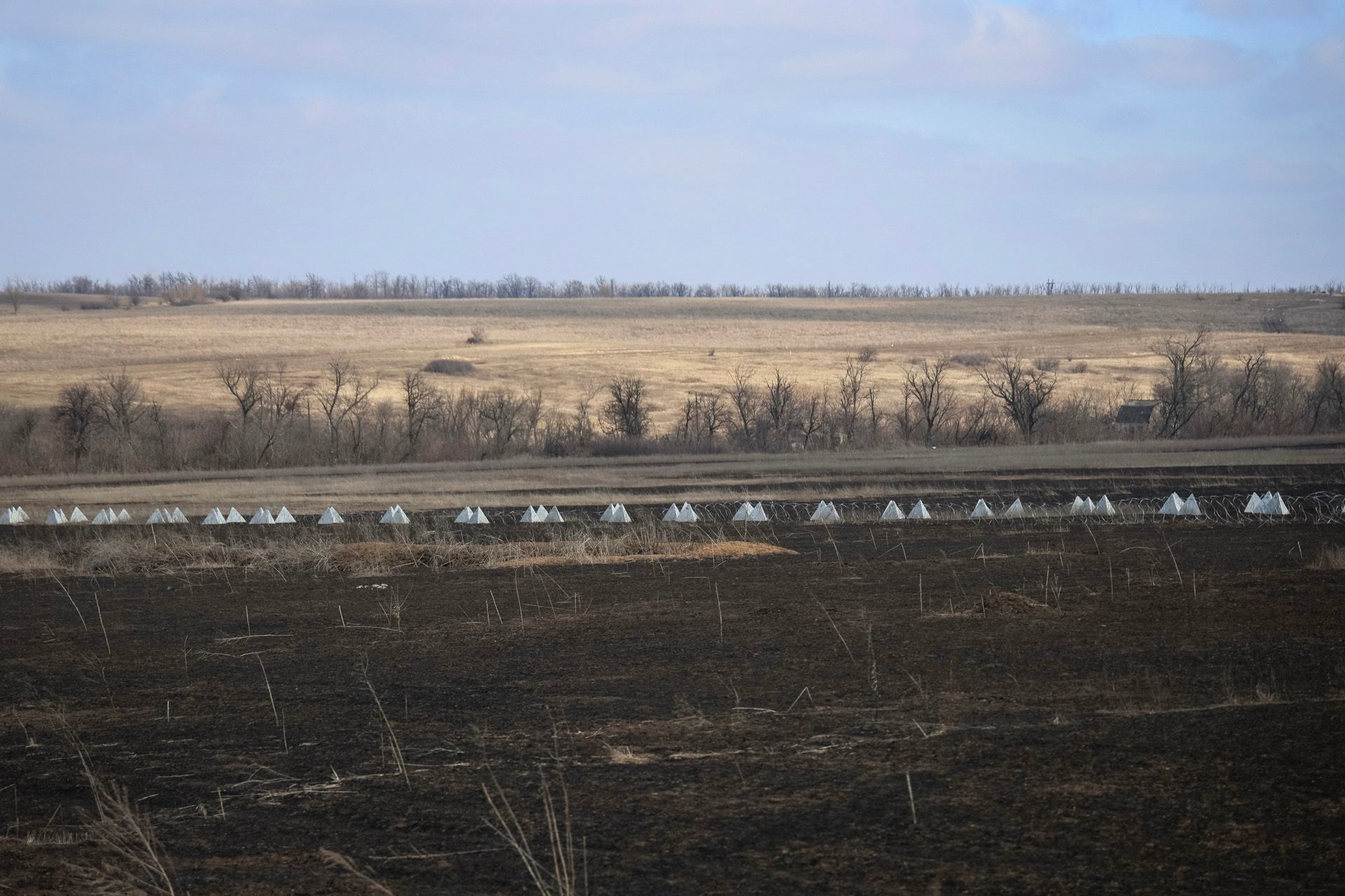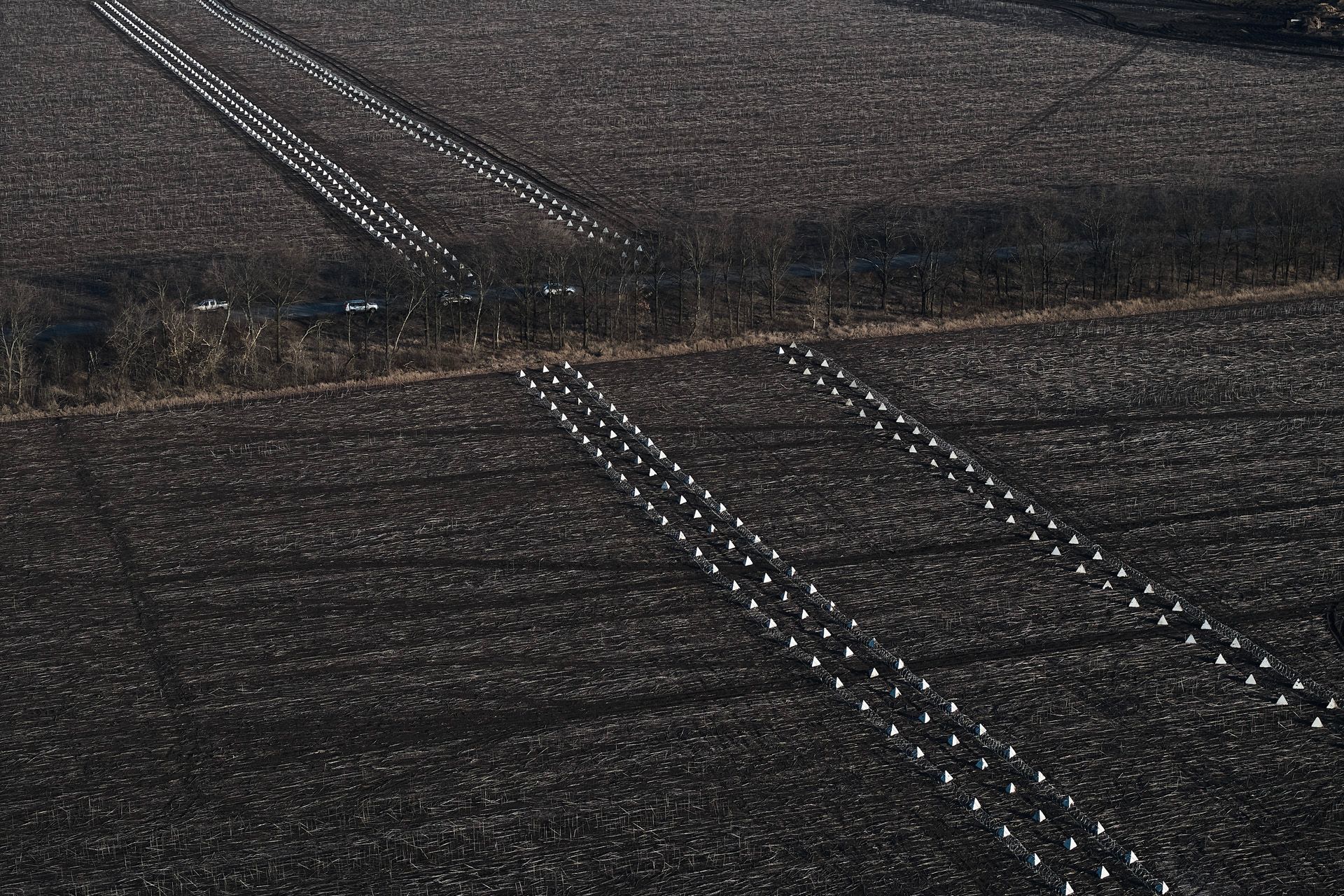 Oleksandr Ratushniak / Reuters / Scanpix / LETA «Зубы дракона» и колючая проволока под Бахмутом в Донецкой области, где российские войска пытаются идти в наступление
