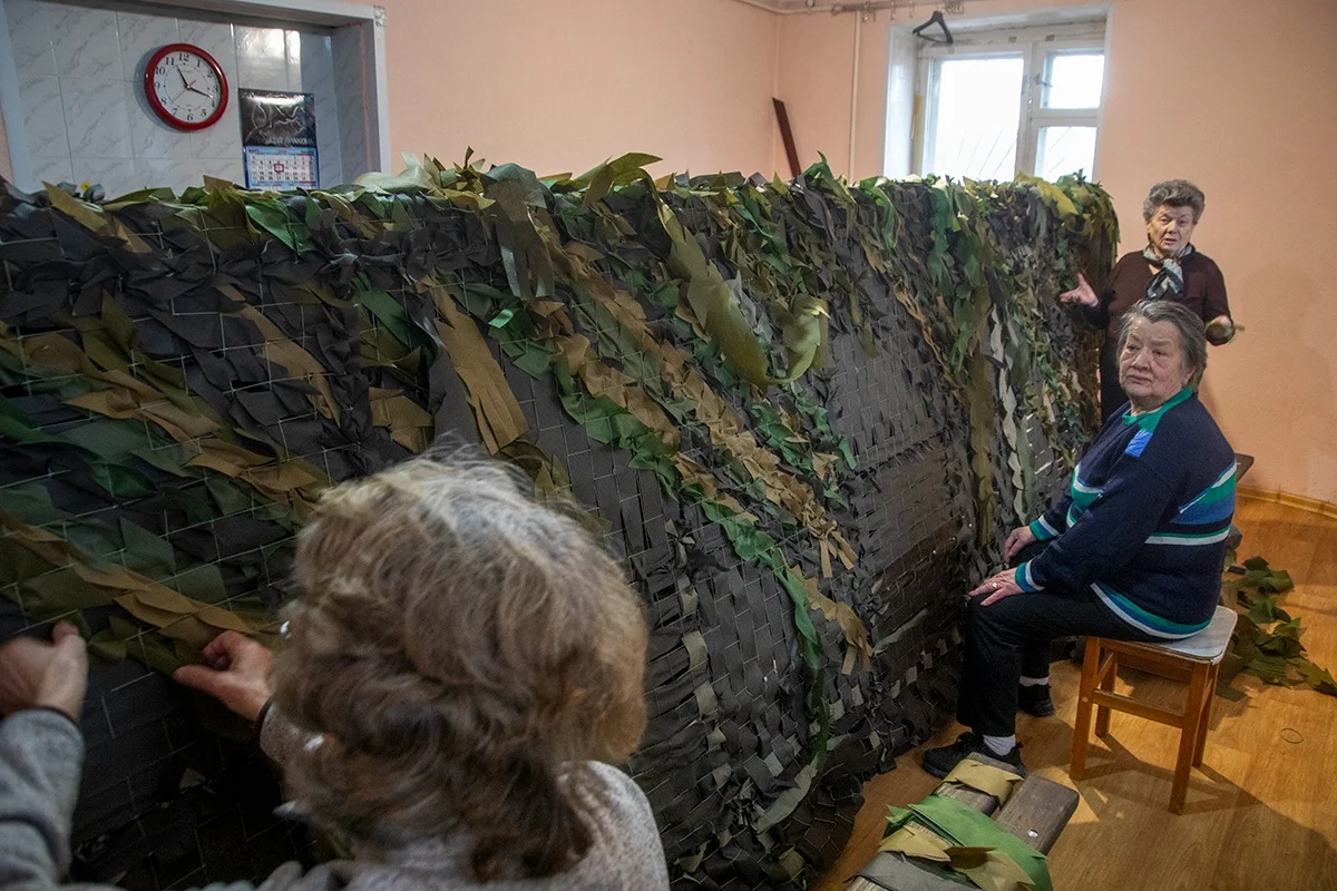74-летняя пенсионерка Нина Андреевна тоже спешит, но не на участок, проскакивает мимо него — на работу. Голосовать она сможет только в воскресенье. А в рабочие дни в бывшем помещении детской поликлиники, признанном аварийным, Нина Андреевна с ровесницами плетут маскировочные сети для российских бойцов в зоне СВО. За аренду двух крохотных комнат — рабочей и складской — платит местный благотворительный фонд «Шаман». Его же сотрудники увозят на фронт коробки с грузами. А вот на материалы для маскировочных сетей, на шерсть для носков и рукавиц пенсионерки скидываются.