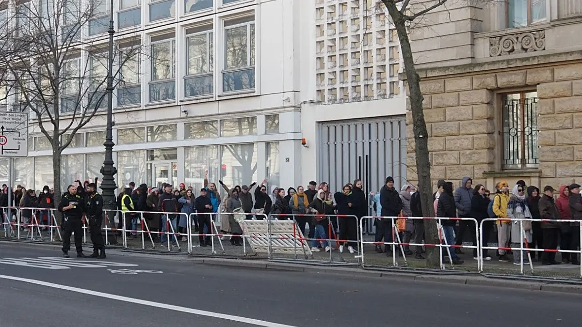 Россияне стоят в очереди перед посольством в Берлине, 17 марта 2024 года. Фото: Елена Романова / «Новая газета»