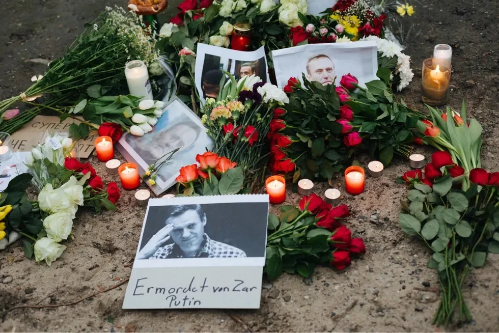 Официально протестная акция была заявлена у стен посольства, но, по сути, митинговать пришлось у стен старого представительства «Аэрофлота». Площадку строго напротив фасада российского дипведомства уже два года держит украинская диаспора. Там постоянно работает выставка фотографий из зоны боевых действий. После 16 февраля рядом появился стихийный мемориал в память об Алексее Навальном.