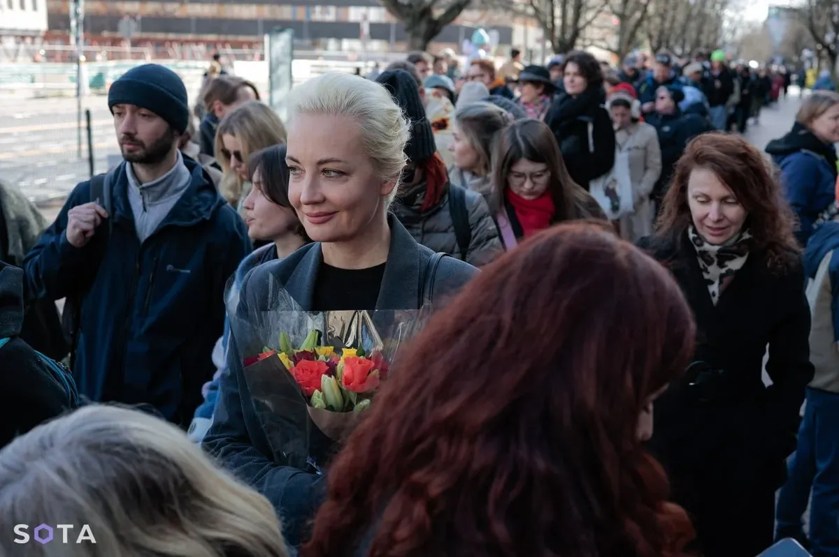 Ближе к шести часам вечера в очереди к посольству люди замечают Юлию Навальную. Они скандируют: «Юля! Юля!» Выйдя из посольства, вдова убитого политика говорит журналистам, что вписала фамилию мужа в бюллетень для голосования.