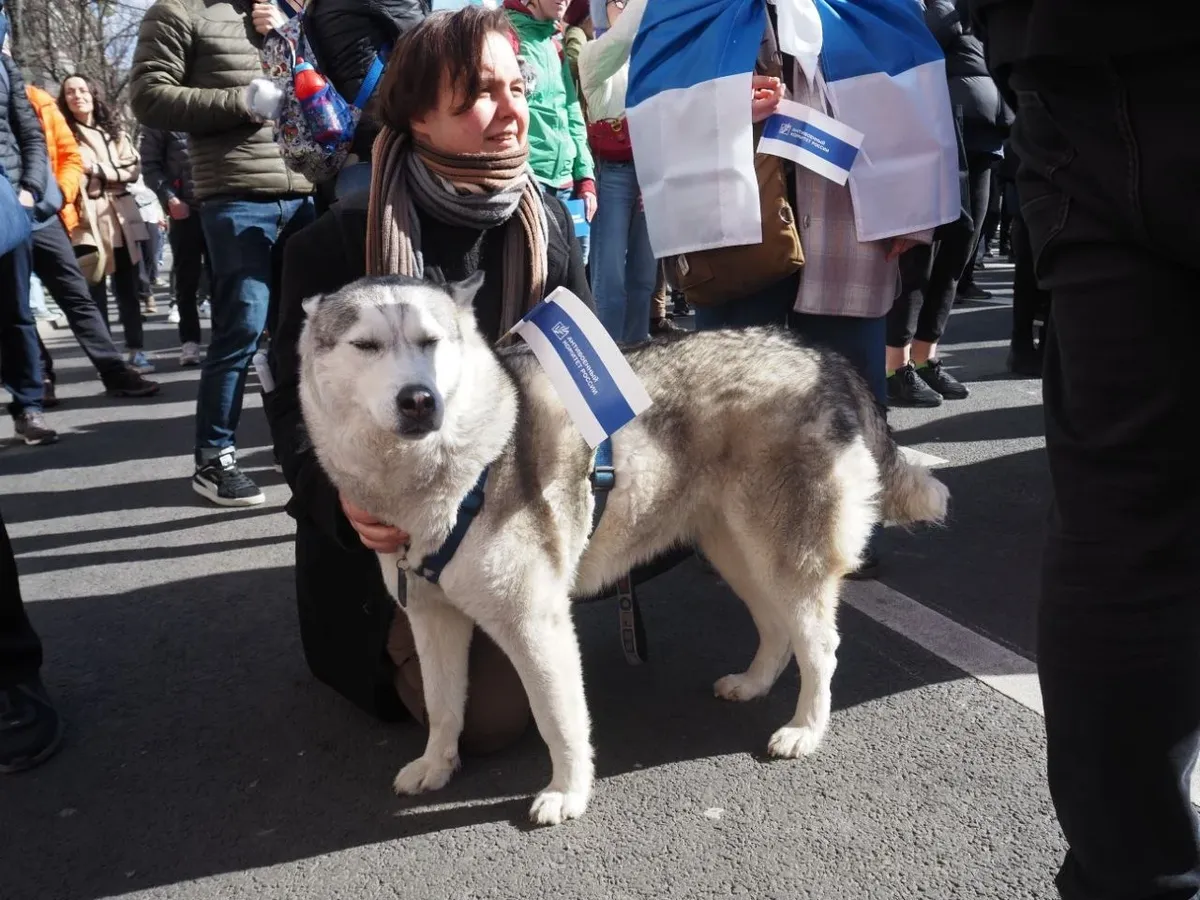 — Это украинцы! — возражает ему другой, показывая на жовто-блакитный флаг на спине у одного из участников акции.