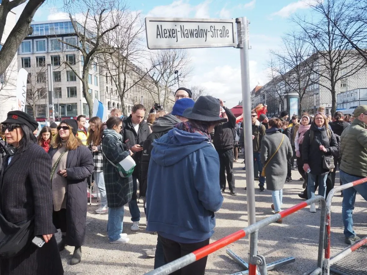 Широкий, с советским размахом отреставрированный бульвар Unter Den Linden 17 марта должен был стать ареной: с одной его стороны по тротуару, огороженная металлическими заборами и полицейскими патрулями, к проходной российского посольства тянулась бесконечная очередь из желающих проголосовать на выборах президента России. С другой — прямо в окна дипмиссии были направлены динамики сцены главного мероприятия российской оппозиционной эмиграции «Полдень против Путина».