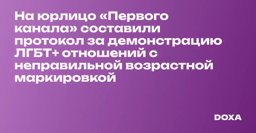 На дочернее юрлицо «Первого канала» составили протокол за показ ЛГБТ+ отношенийч. 2 ст. 6.21.2 КоАП РФ с неправильной возрастной маркировкой, обратила внимание «Медиазона». Протокол был составлен на АО «Первый канал. Всемирная сеть», которое отвечает за вещание канала за рубежом. Административное дело будет рассматривать Таганский суд Москвы.