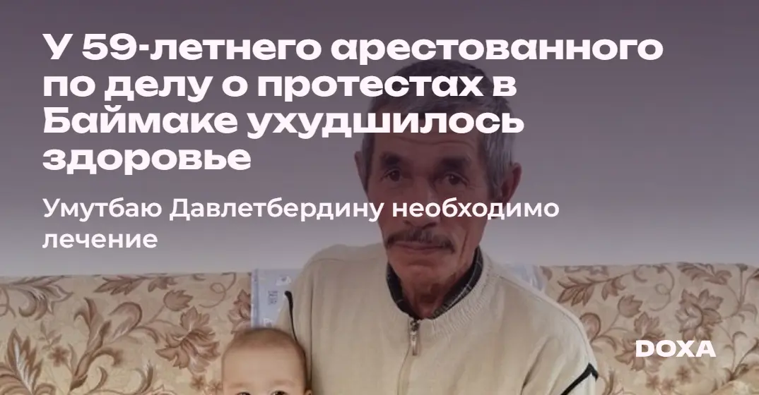У фигуранта дела о протестах в Баймаке Умутбая Давлетбердина ухудшилось здоровье в СИЗО, сообщил адвокат от «ОВД-Инфо» Сергей Подольский.