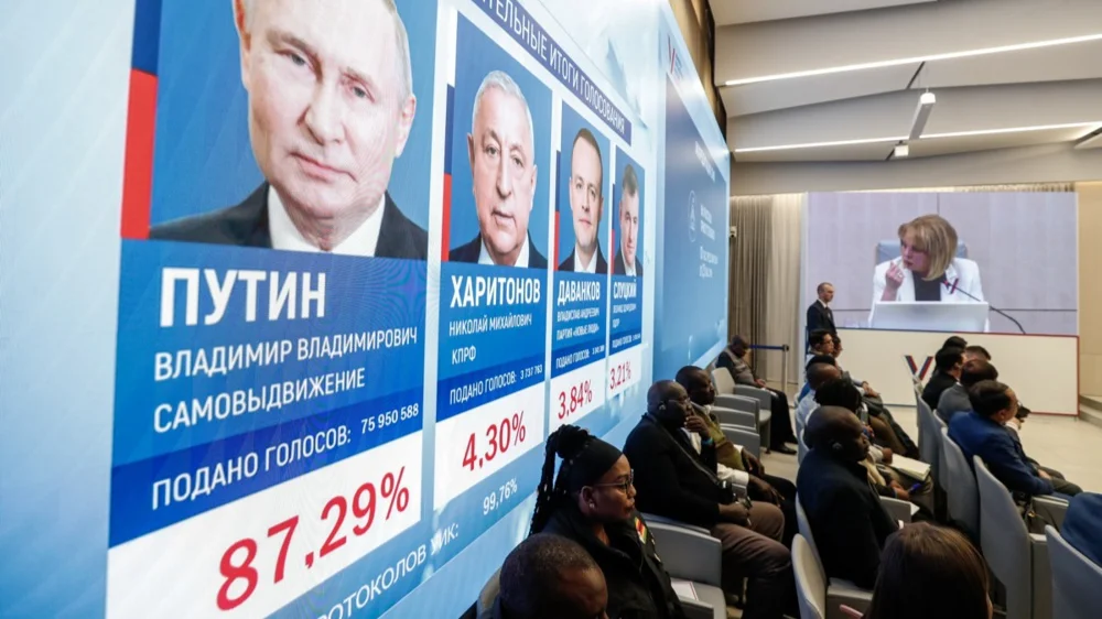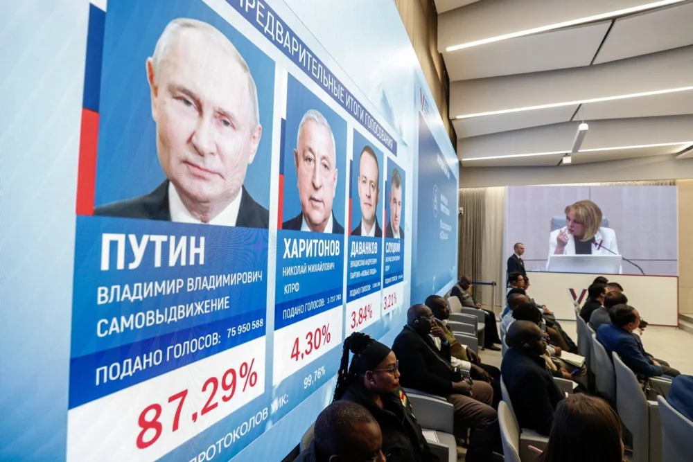 CEC head Ella Pamfilova said that over 87.1 million Russians — 77.44% of the eligible electorate — had voted, a record turnout for a Russian presidential election in the modern era.