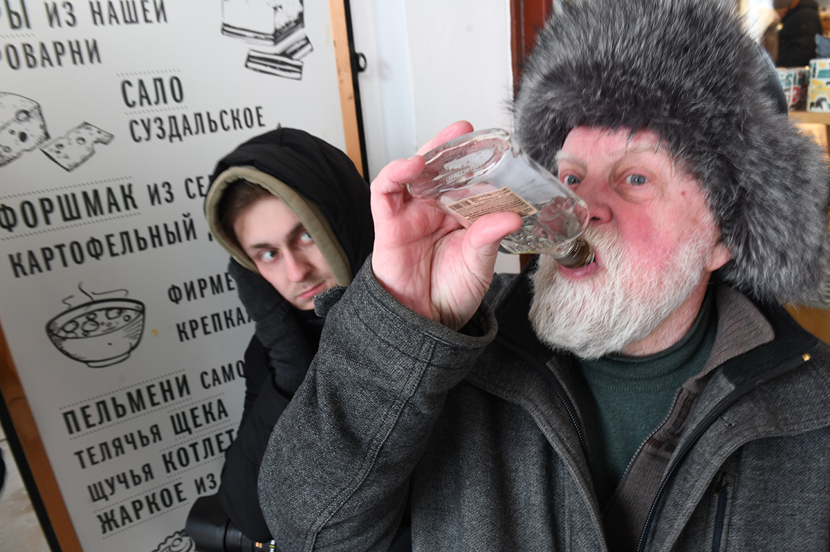 Посетители на праздничной ярмарке, посвященной Масленице, в СуздалеФото: Владимир Вяткин / «РИА Новости» Алла, ей 35 лет («Я тут единственный представитель молодежи», — смеется она), вспоминает, что раньше «самогона гнали очень много, потому что не было денег. Это середина девяностых, и алкоголь тогда был единственной твердой валютой. Родители работали в колхозе на свекле, им платили сахаром, поэтому сахар был и самогона гнали очень много, а потом расплачивались им за все. Например, дрова привезли — вот тебе бутылка».