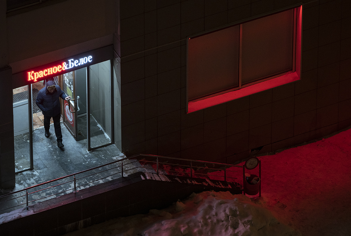 Торговая точка на первом этаже обычной панельки. По соседству — шаверма и чуть более приличный магазин. Первый час ночи. В магазинчике, таком же, как тысячи других магазинов «у дома», никого нет, только продавщица средних лет скучает за просмотром турецкого сериала.