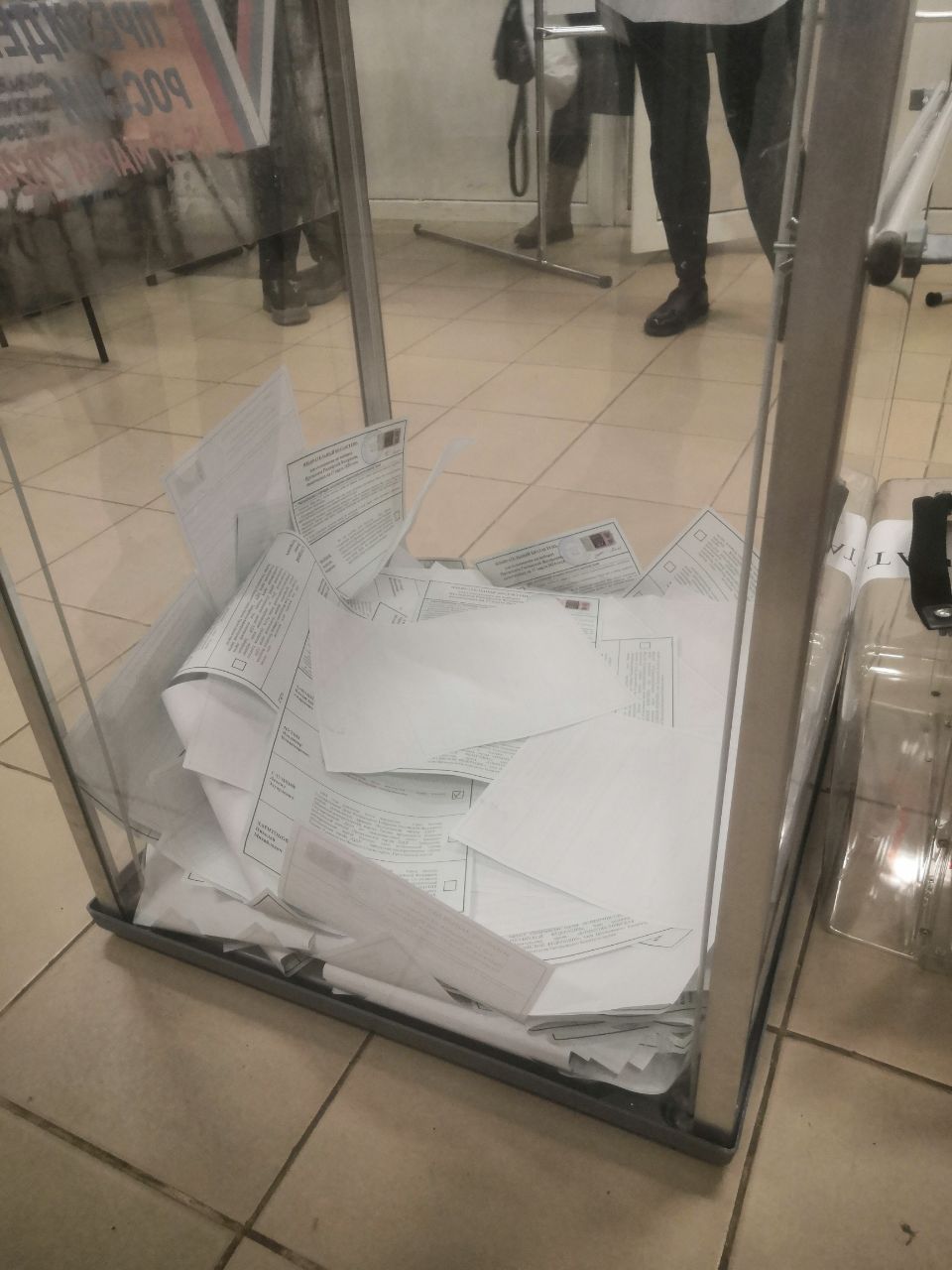 Ролик также совпадает с рассказом члена местного УИК «Бумаге», которая подозревала факты вбросов на участке. По ее словам, «в урне была щель, а бюллетени в ней с утра в субботу лежали не так, как в пятницу вечером».