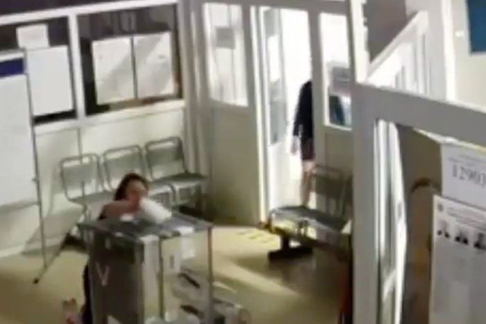 В среду, 20 марта, сообщество «Наблюдатели Петербурга» опубликовали видео с одного из избирательных участков. На кадрах женщина крадется на коленях в комнату с урной для голосования и вбрасывает бюллетени.