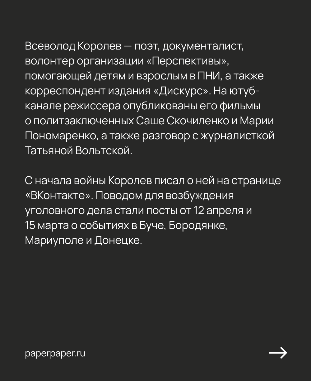 - Что известно о петербуржце Всеволоде Королеве, которого задержали по делу о «военных фейках»