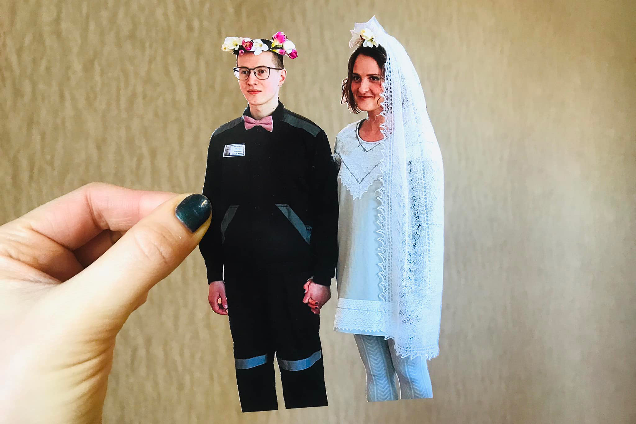 Свадьба для нас не была самоцелью, мы не мечтали пожениться в тюрьме. Это была вынужденная мера, причем довольно экстремальная. Было много бюрократических сложностей из-за предыдущего брака Вити, который нужно было расторгнуть. Его бывшая жена Соля живет за границей, в ЗАГС прийти не может, поэтому мы с ней удаленно писали разные письма через нотариуса и посылали в суд — короче, эпопея. К тому же Витя — гражданин Казахстана. Это тоже дополнительные сложности. Сотрудница ЗАГСа осенью мне в трубку кричала, что у нас с Витей ничего не получится. Затем она же пришла нас регистрировать.