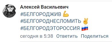 В общем, мейнстрим в белгородских соцсетях – это "Белгород жив", "Белгород-герой" и "Белгород не сломить!". А также слегка неочевидное "Белгород – это Россия".