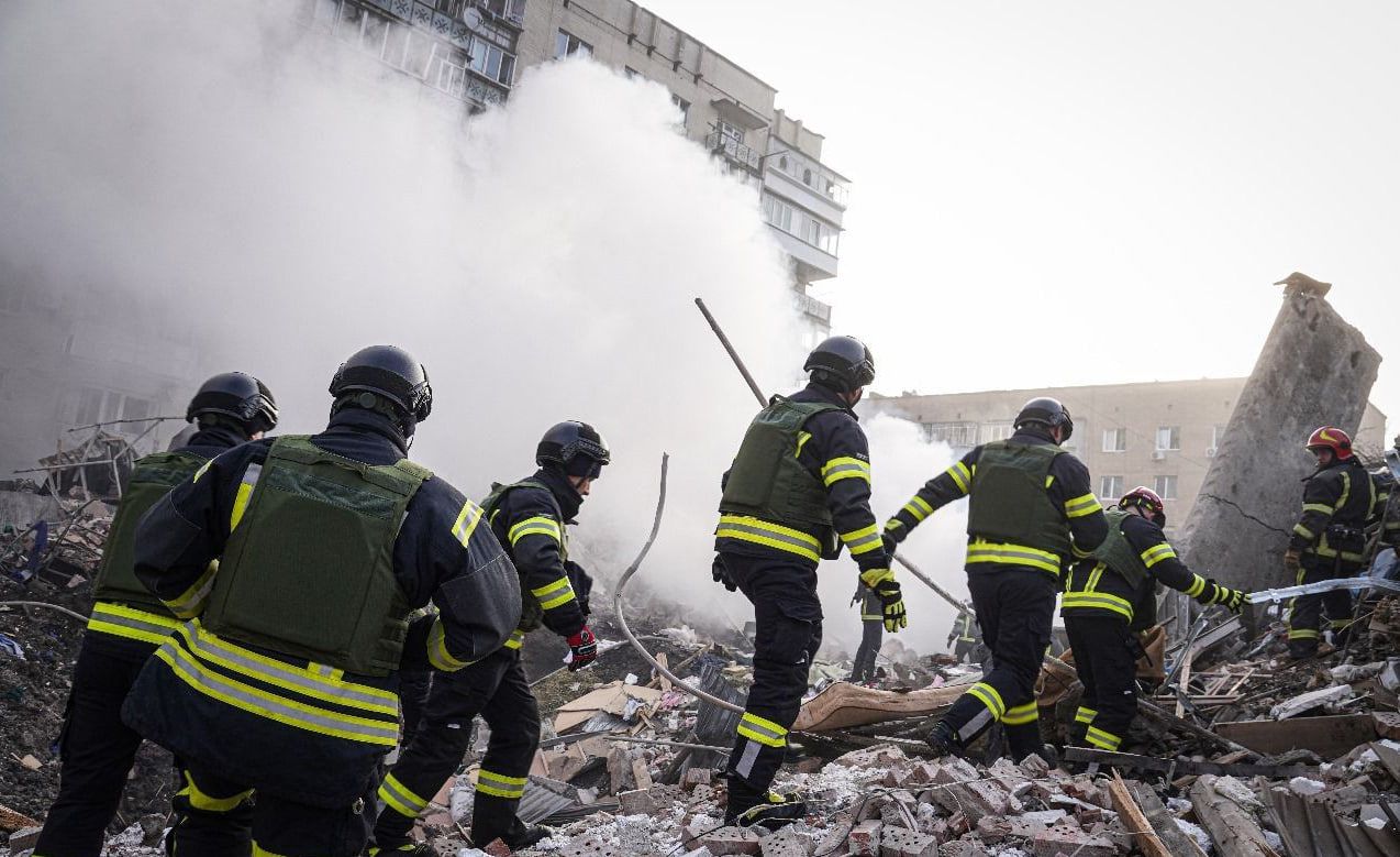 В городе Хмельницкий в результате атаки насчитывалось двое погибших и восемь раненых, сообщила сразу после полудня по киевскому времени Государственная служба по чрезвычайным ситуациям (ГСЧС).