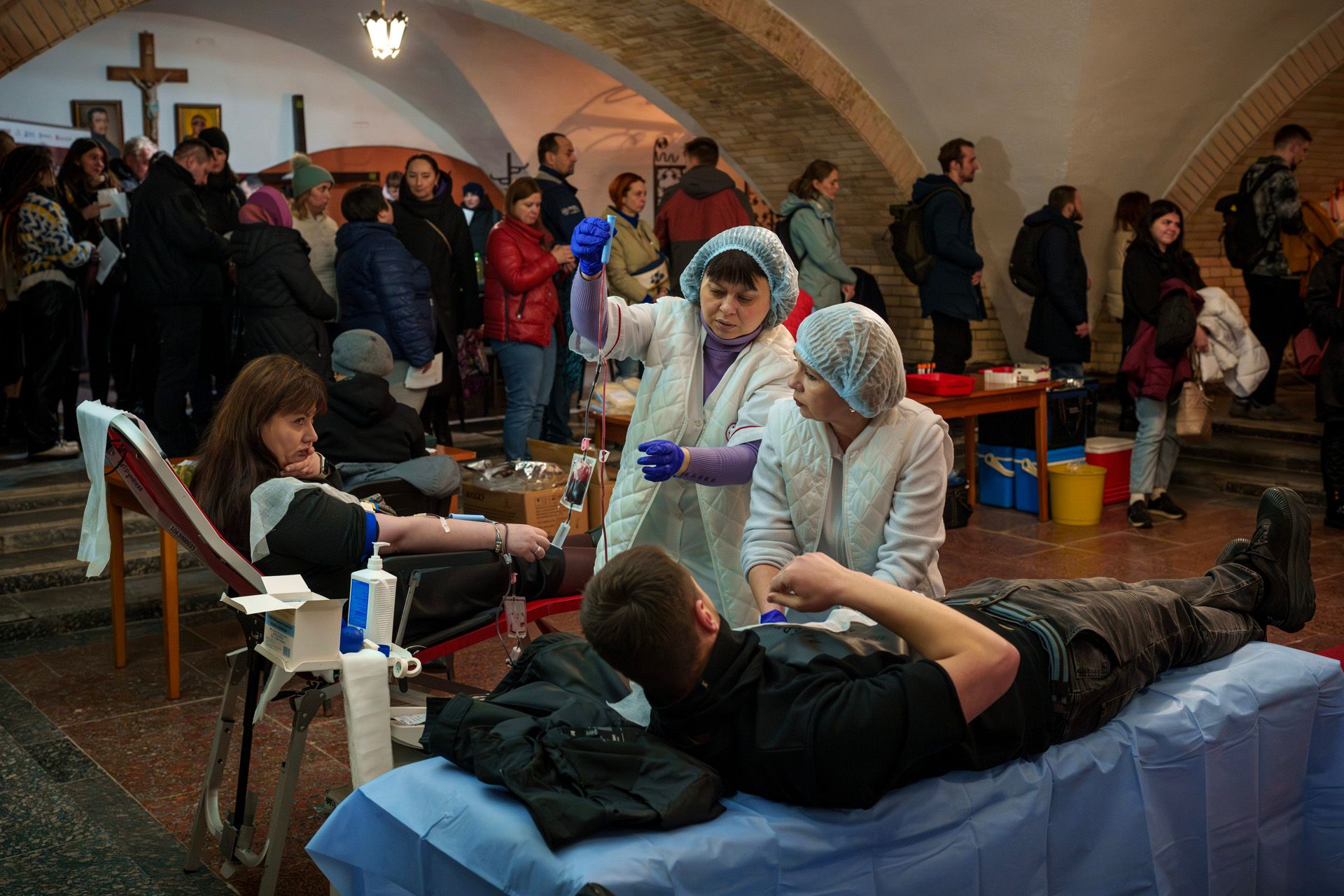 В Украине регулярно проводится сбор крови для военнослужащих, защищающих страну. Донорство поддерживают на государственном уровне, сдавать кровь для военных еще в начале российского вторжения призывал президент Украины Владимир Зеленский. Организацией сбора крови для военных также занимаются неправительственные структуры, включая религиозные. Так, например, сбор крови проводят в Николаевском костеле в Киеве.