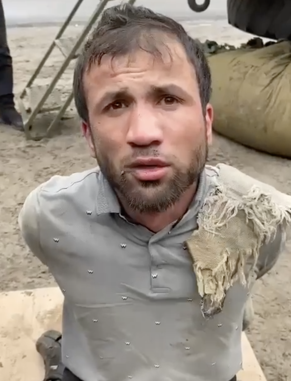 Видео допроса в канале Mash тоже начинается с угроз. «Давай, блядь, как можешь, нахуй, я рядом сижу. У тебя одно ухо осталось!» — говорит один из силовиков. Другой его останавливает и начинает расспрашивать задержанного. Он называет свое имя, но его трудно расслышать. «Раджаб Али Зада?» — переспрашивает силовик. Мужчина кивает. Потом он говорит, что плохо понимает русский язык. Силовики допытываются, выбросили ли они оружие из машины до задержания. Тот подтверждает, но сказать, где именно это произошло, не может.