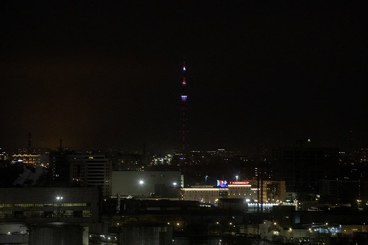 "Телебашни РТРС в связи с трагическими событиями в Москве изменят подсветку на цвета российского флага и горящую свечу", — сказано в сообщении ТАСС со ссылкой на Российскую телевизионную и радиовещательную сеть. Санкт-Петербург, телебашня на Чапыгина 6. Фото: Stringer