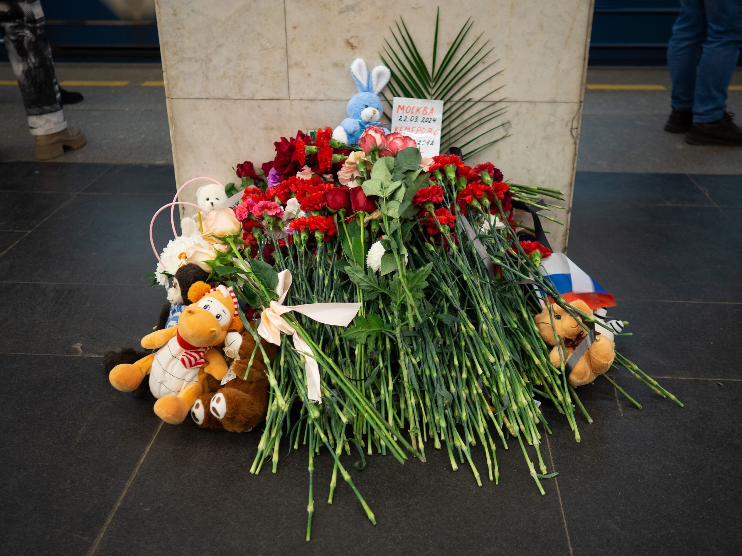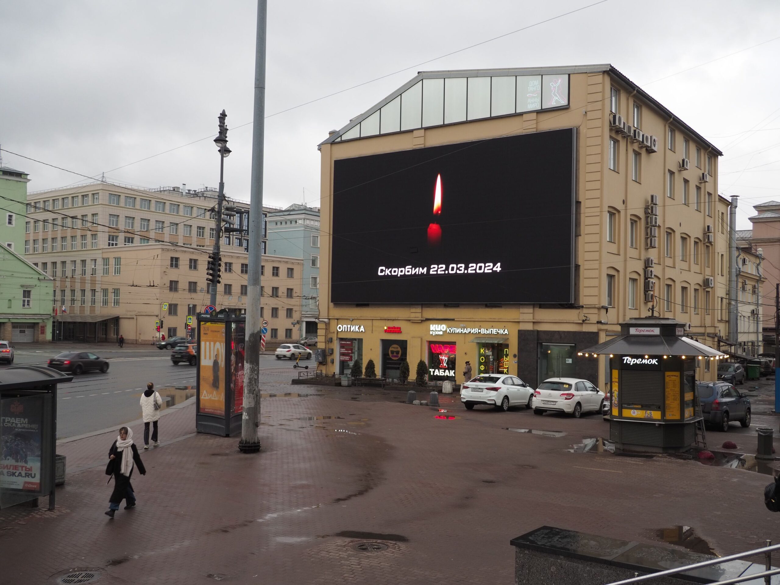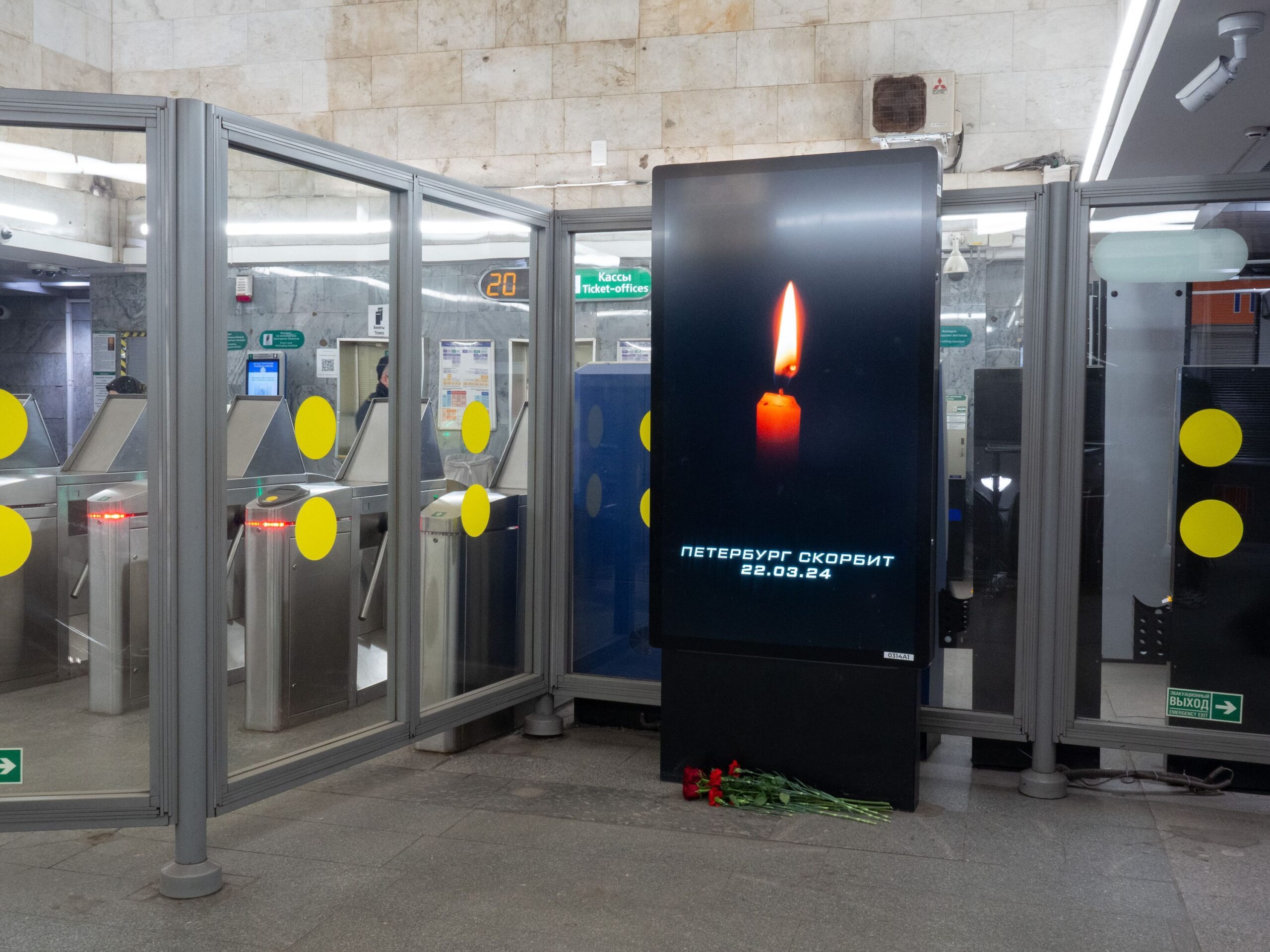 Все выходные после теракта в подмосковном «Крокус Сити Холле» в Петербурге проходили акции скорби: люди несли цветы к стихийным мемориалам в разных точках города, на билбордах которого горели свечи. «Бумага» была рядом — и показывает, как в Петербурге почтили память жертв атаки.