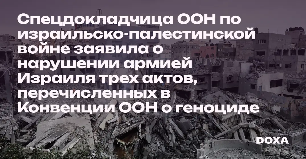 Спецдокладчица ООН по израильско-палестинской войне заявила о нарушении армией Израиля трех актов, перечисленных в Конвенции ООН о геноциде