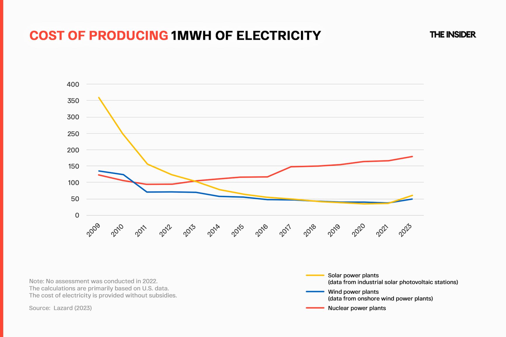 The second factor is the escalating costs of both the reactors and the electricity they generate . This is driven by prolonged construction times and the growing complexity of nuclear power plants. It has become customary for nuclear projects to exceed their initial budgets. Bent Flyvbjerg, an esteemed professor at the Saïd Business School, University of Oxford, has meticulously tracked data on around 16,000 mega-projects across 136 countries for nearly three decades. According to his research , the average cost overrun during nuclear plant construction stands at 120%, and for nuclear waste storage facilities, it is a staggering 238%. In contrast, cost overruns for the Olympic Games are 157%, for wind farm construction they're 13%, and for solar power plants construction they are a mere 1%. The disparity stems from the intricate and largely unique nature of nuclear projects, where for safety reasons precision is paramount from the outset. In contrast, wind and solar projects rely on standardized modular structures produced at scale.