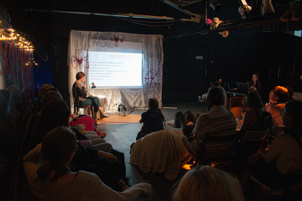 Вечеринка прошла в закрытом формате. «Мне запомнилось чувство общности и безопасности среди большого количества людей», — вспоминает Дарья. Она решила, что хочет устраивать новые мероприятия, заряженные идеологией феминизма и ненасильственного, безопасного общения, чтобы «радоваться, несмотря на полный ад, в котором мы находимся». «Когда мы видим друг друга, становится немного легче», — говорит Даша.