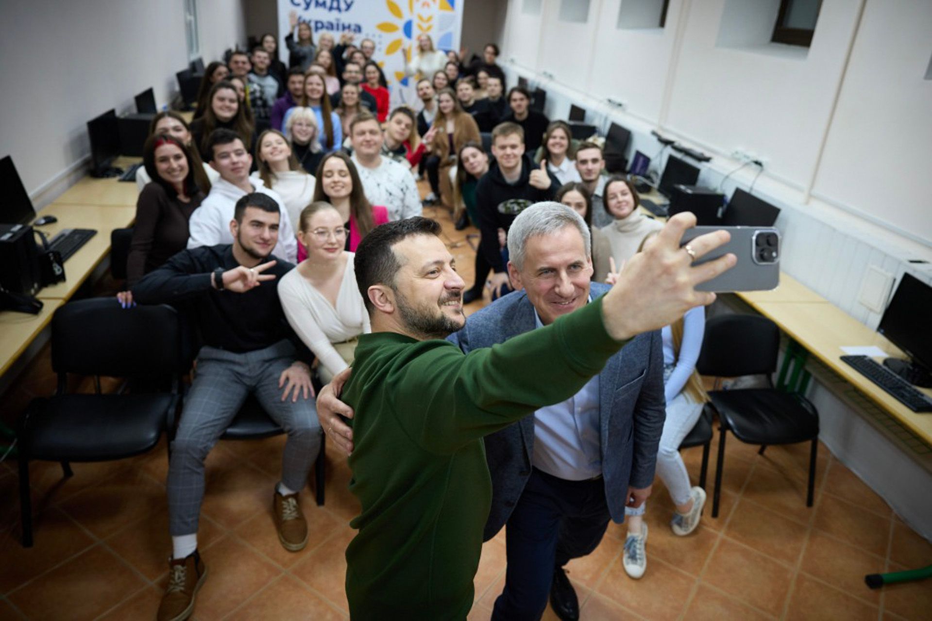 Пресс-служба президента Украины «Обязательно сделаем все для того, чтобы Украина жила, чтобы молодежь имела возможность жить и развиваться в Украине», — написал Зеленский в своем телеграм-канале о встрече со студентами в Сумской областиПресс-служба президента Украины В госпитале президент Украины вручил награды раненым военным. «Большая благодарность, большой поклон врачам, всем медицинским сестренкам, каждому, кто помогает восстанавливаться после ранений», — написал ЗеленскийПресс-служба президента Украины Одним из ключевых пунктов рабочей поездки были вопросы «защиты Сумской области, каждой общины, каждого города», сообщил Зеленский. «Особенно сложно в приграничье: там постоянный русский террор. Постоянные обстрелы, авиационные удары, противодействие диверсионным группам врага», — написал в своем телеграм-канале президент Украины, выразив особую благодарность всем защитникамПресс-служба президента УкраиныПресс-служба президента Украины Зеленскому, в частности, продемонстрировали оборонительные сооружения, строительству которых Украина на данном этапе войны уделяет особое внимание
