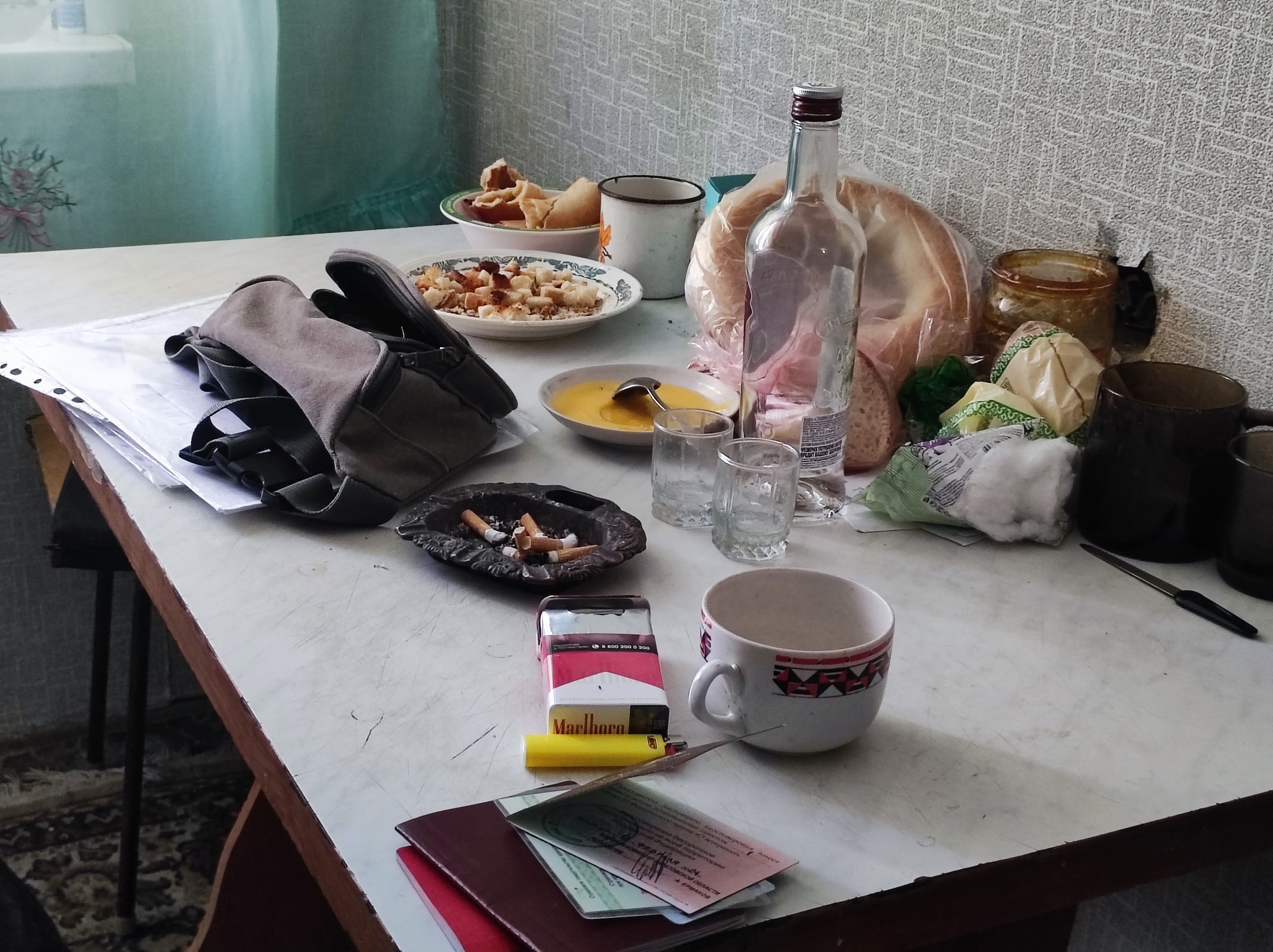 Как раз в день нашей встречи рядом с Колей был некий Дамир – в куртке, кепке и темных очках, несмотря на то что они с Колей знают друг друга давно и выпивают в тесной кухне не в первый раз. На столе были остатки водки, две стопки, кусок белого хлеба и мёд.
