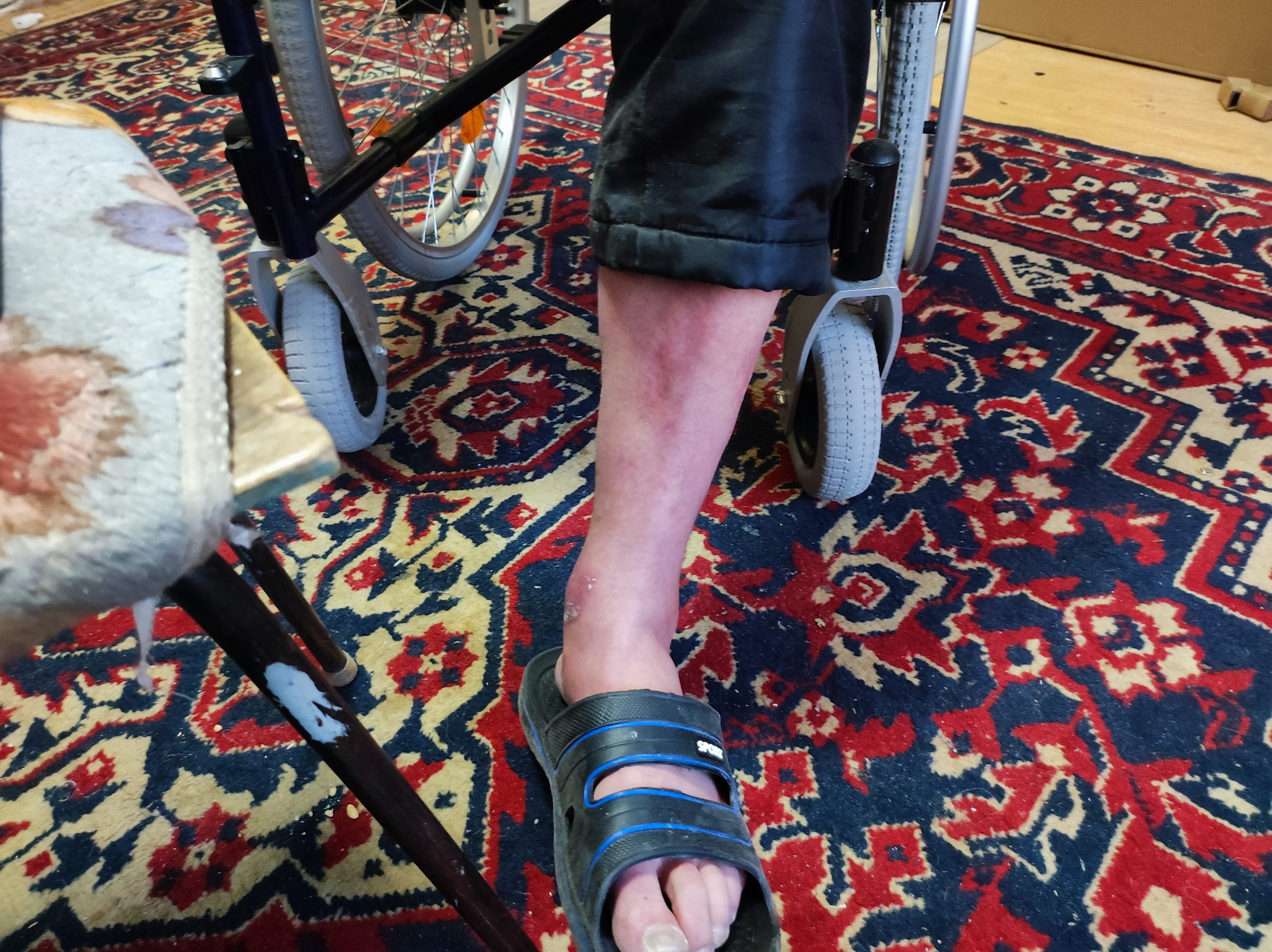 Коле между тем удалось получить от государства две инвалидные коляски – домашнюю и прогулочную, бадик (опорная трость для ходьбы) и чек на протез – 390 тысяч рублей. Протез за такие деньги можно сделать самый простой. Костыли и ходунки, с помощью которых Коля справляется с туалетными делами, он покупал себе сам. С мамой, которой он так хотел помочь, он в итоге не общается, как и с другими родственниками. Из близких друзей у него только кошка Кнопа. Но она не поможет со стиркой, не помоет полы, не принесёт из магазина хлеба.