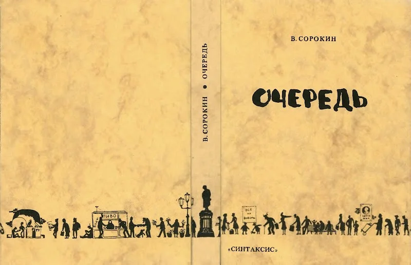 Первым крупным опубликованным произведением Владимира Сорокина был небольшой роман «Очередь», вышедший во Франции в 1985 году. С тем же успехом «Очередь» можно назвать и пьесой, потому что весь текст представляет собой парад друг за другом идущих реплик, смонтированный без единой авторской ремарки в один большой разговор между стоящими в очереди советскими гражданами. В этой человеческой многоножке появляются герои, они влюбляются, ругаются и дерутся, потом пропадают в мешанине других голосов и появляются вновь. Главная интрига романа — за чем же таким стоит очередь — одновременно намекает на позднесоветские политические и бытовые реалии и метафорически разрешается ничем, потому что мы так и не получаем однозначного ответа. В этой сорокинской конструкции в образе «живой очереди» обобщается всё застойное существование, если не вся человеческая жизнь без смысла и цели.