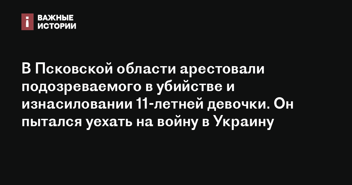 В Псковской области арестовали подозреваемого в убийстве и изнасиловании 11-летней девочки. Он пытался уехать на войну в Украину