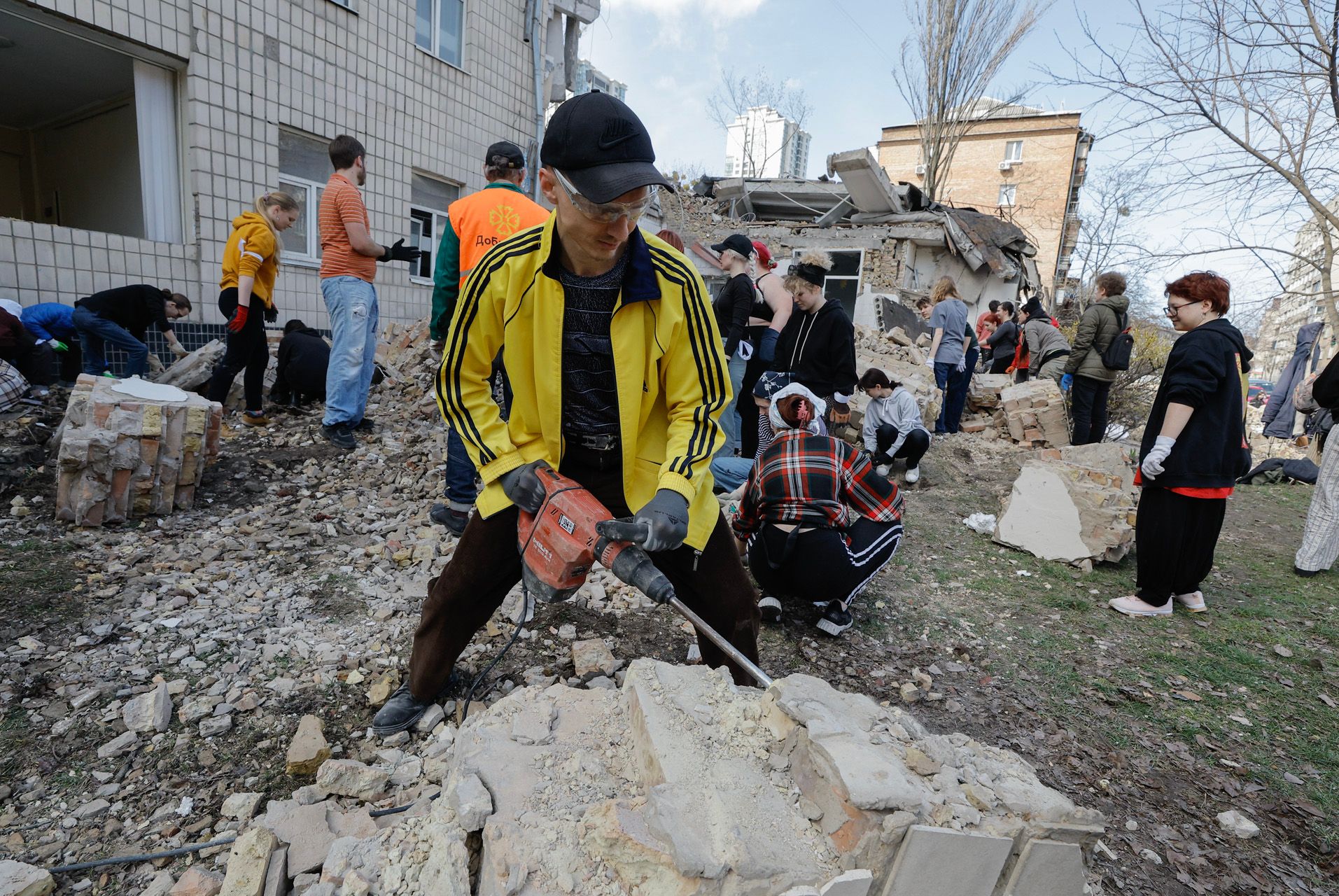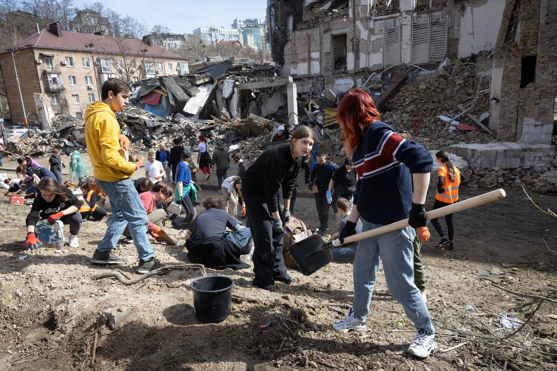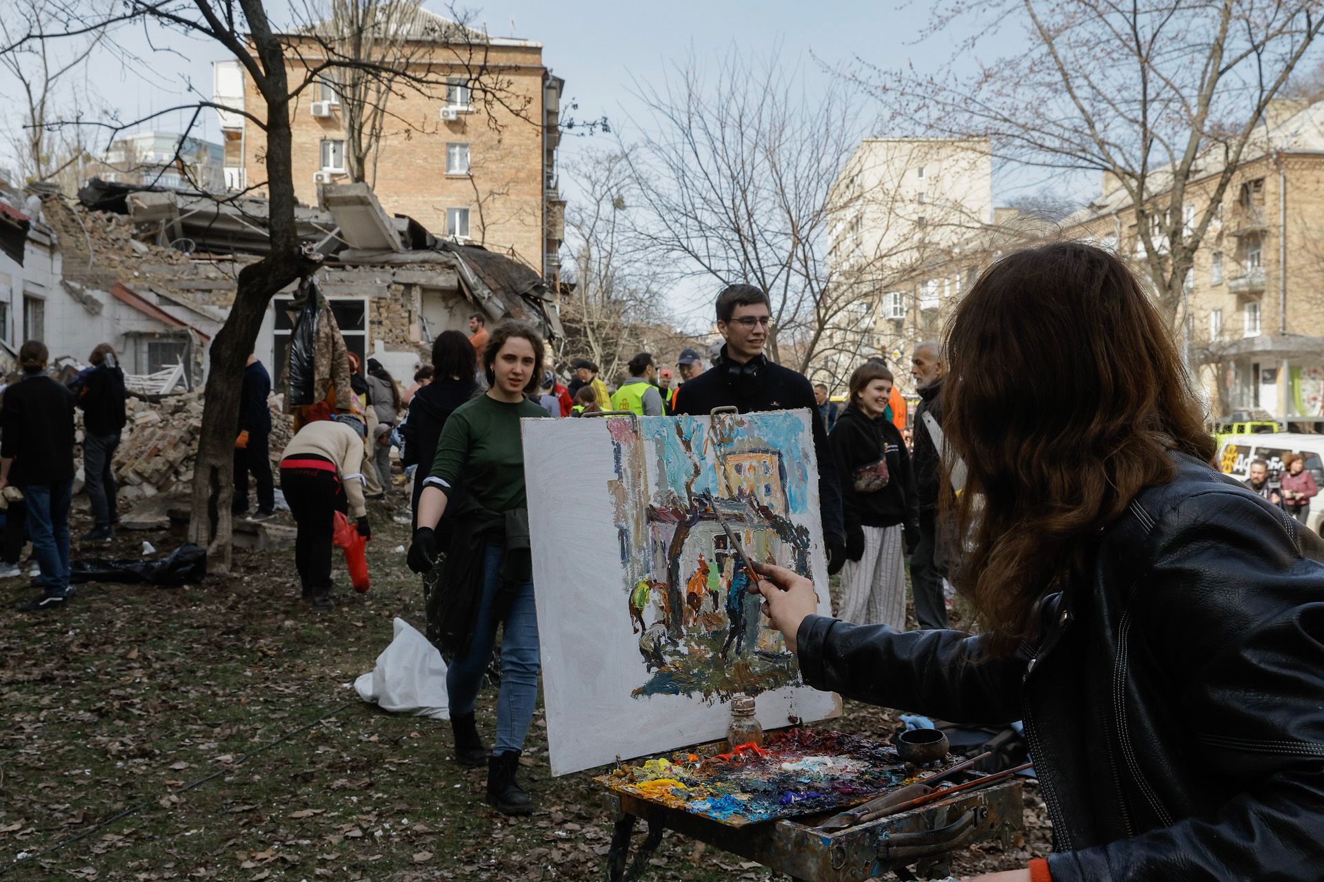 Студенты-художники расчищают завалы в Киеве — их академию разрушили обломки российской ракеты