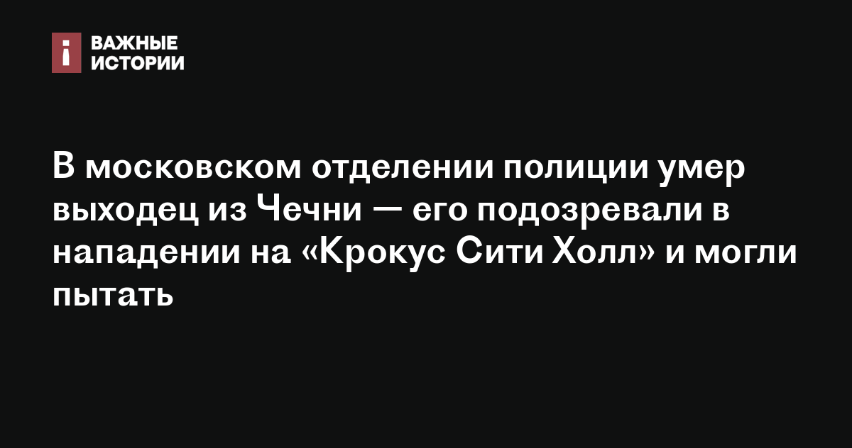 В московском отделении полиции умер выходец из Чечни — его подозревали в нападении на «Крокус Сити Холл» и могли пытать