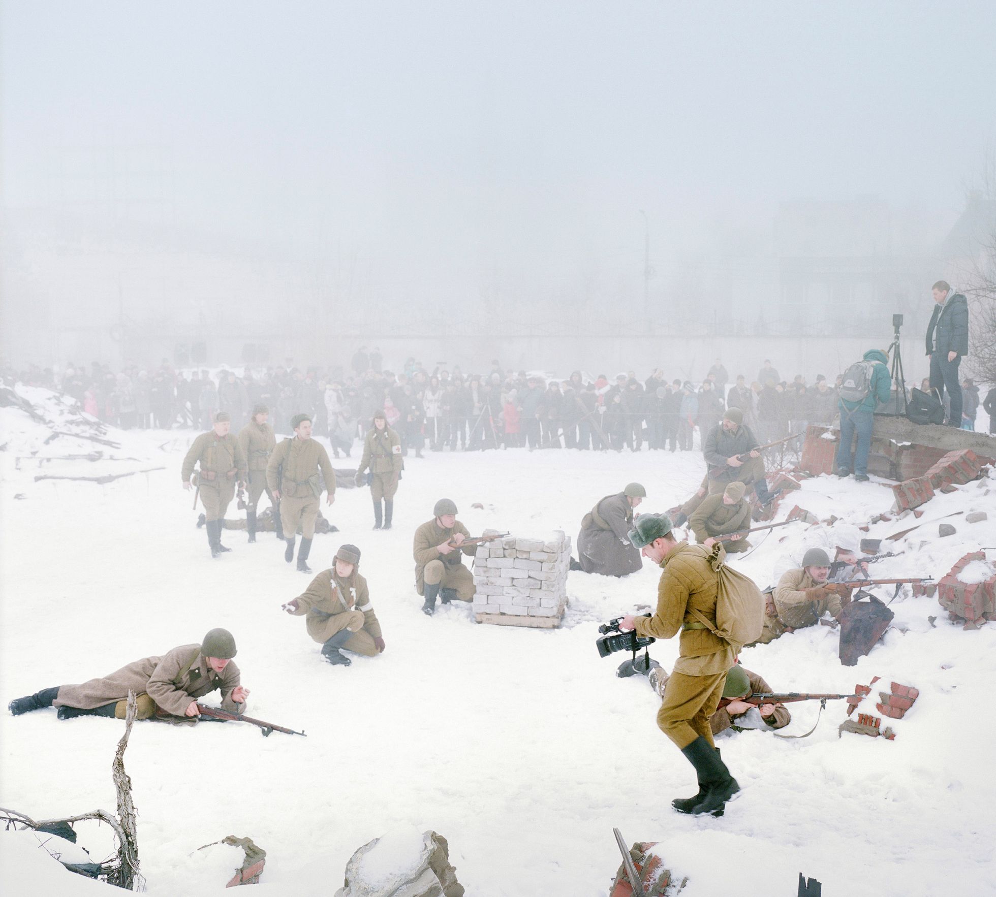 Почему Гронский увлечен бутафорией? Скорее всего, дело в том, что фальшивая старина в некотором смысле правдива. Она способна рассказать, кем люди себя видят, о чем они мечтают и чего лишены. Снимая подделки, фотограф показывает зазор между фантазией и реальностью — эту же цель он преследует, когда фиксирует, например, новейшую уличную пропаганду.