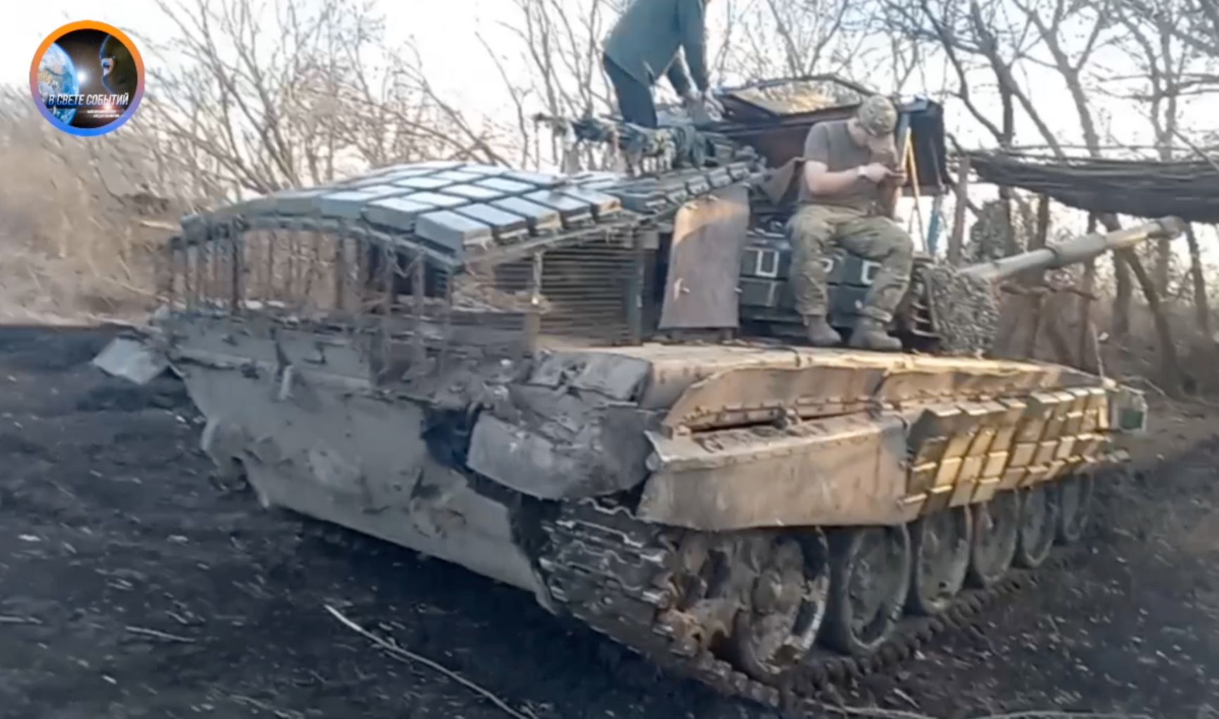 Появилось видео российского танка Т-72Б(1), оборудованного для стрельбы с закрытой огневой позиции . Его моторно-трансмиссионное отделение прикрывает «мангал» с установленными на нем элементами динамической защиты .