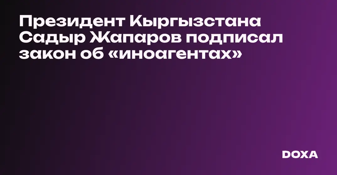 Президент Кыргызстана Садыр Жапаров подписал закон об «иноагентах», он вступит в силу через 10 ней, сообщает Kloop. Ранее законопроект был принят в третьем чтении за две минуты.