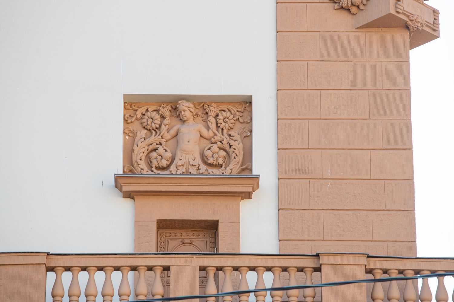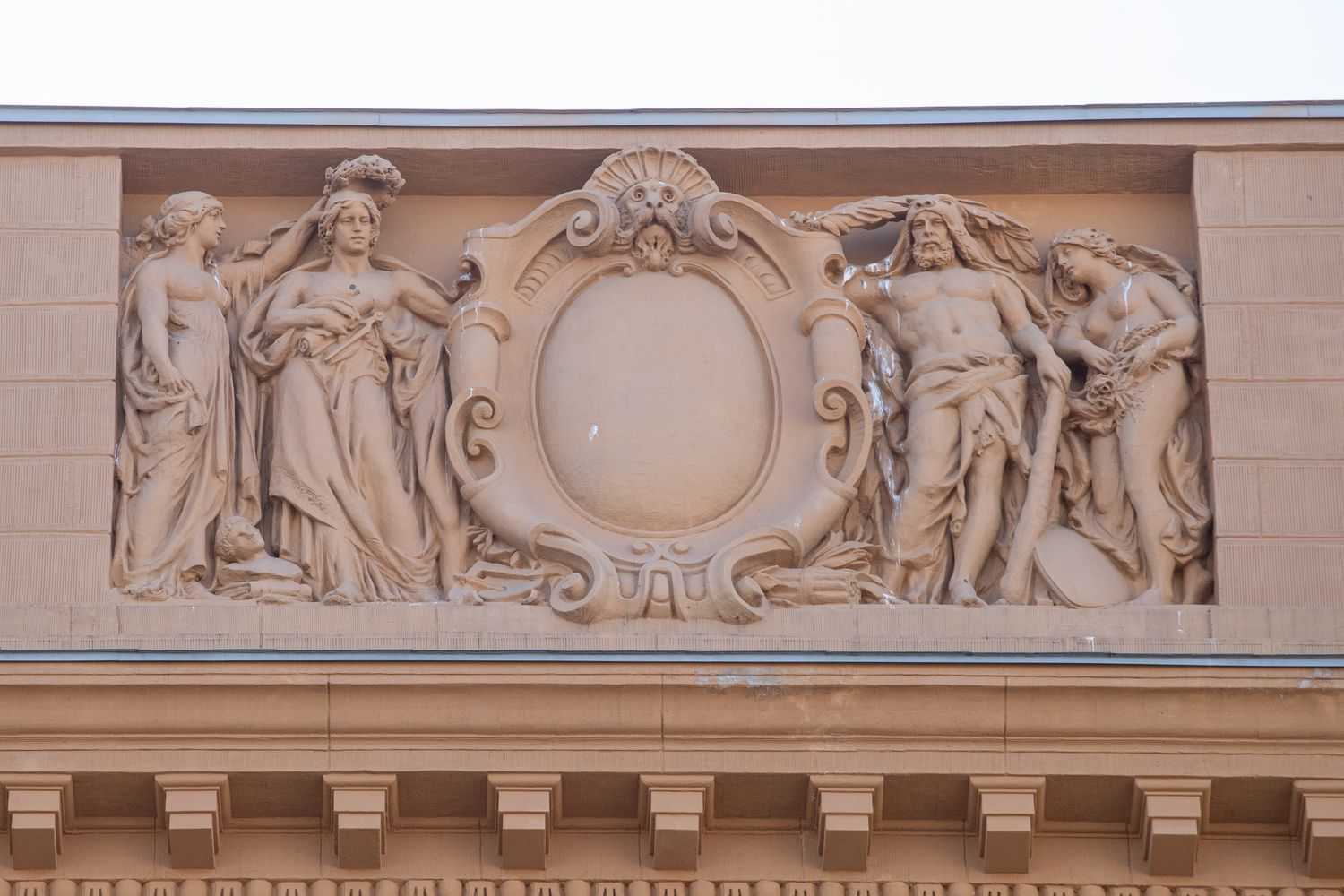 - Осмотреть неоклассические фасады здания и отыскать на них львов, ангелочков-путти, театральные маски и сразу три мемориальные доски. Последний раз снаружи здание реставрировали в 2020–2021 годах. Работы пришлись на время пандемии COVID-19, и забор вокруг здания, установленный на время ремонта, неожиданно приобрел мемориальный смысл — на нем горожане помещали фотографии умерших от коронавируса петербургских медиков.