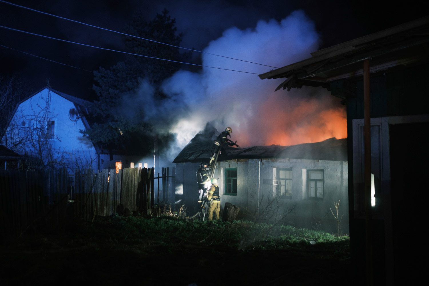 Как рассказали в ведомстве, во время массированной атаки российских беспилотников один дрон попал в жилой трехэтажный дом, частично разрушив крышу и верхний этаж. Там начался пожар.