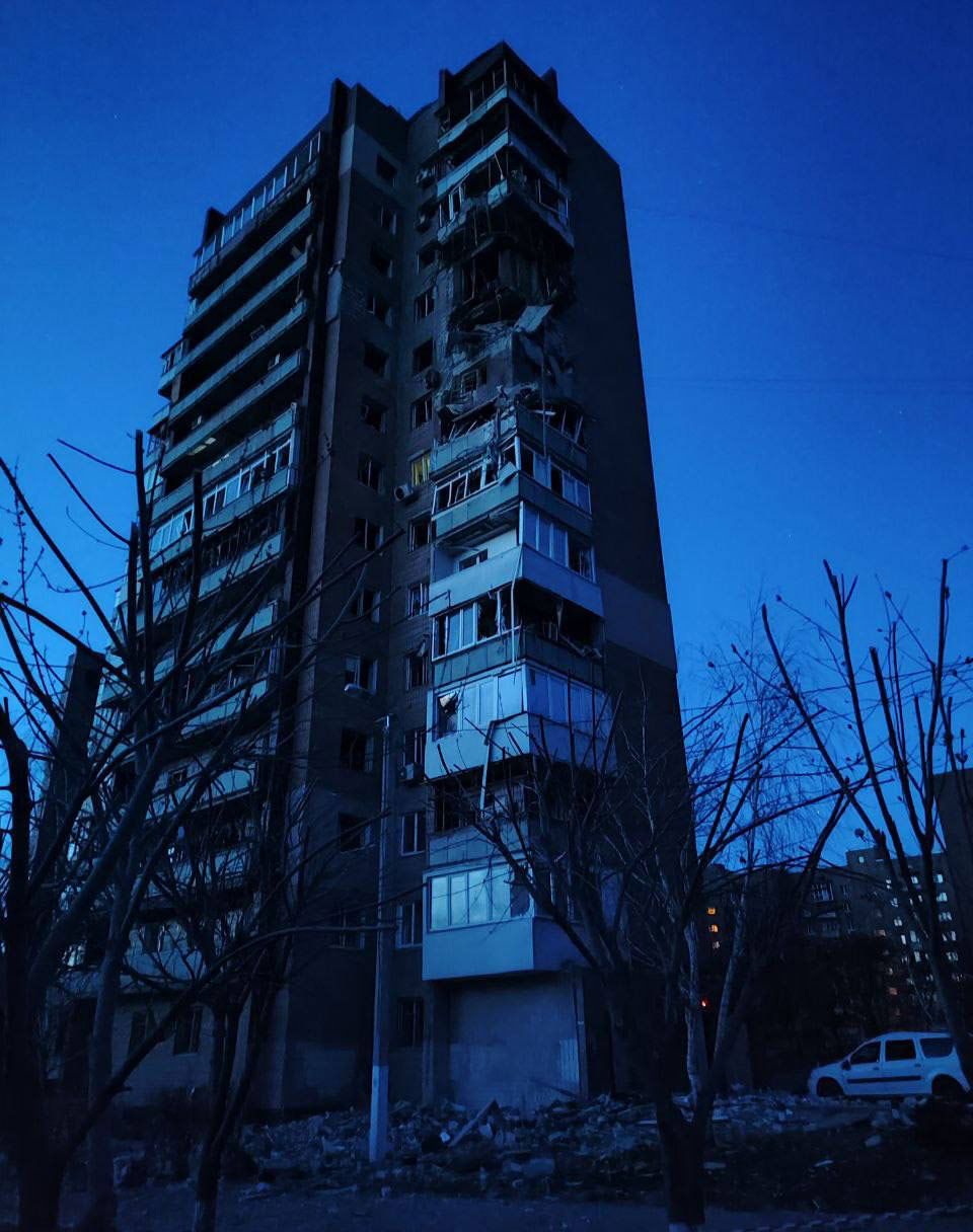 Как заявил глава Харькова Игорь Терехов, «Шахеды» поразили не менее трех жилых домов. Один беспилотник попал в 14-этажный дом, из-за чего, по словам Терехова, разрушены квартиры на нескольких этажах, повреждена внешняя стена. В другом месте, как рассказал мэр, при повторном ударе беспилотников по жилому кварталу погибли трое спасателей ГСЧС, пострадали спасатель, полицейский и медсестра скорой помощи.